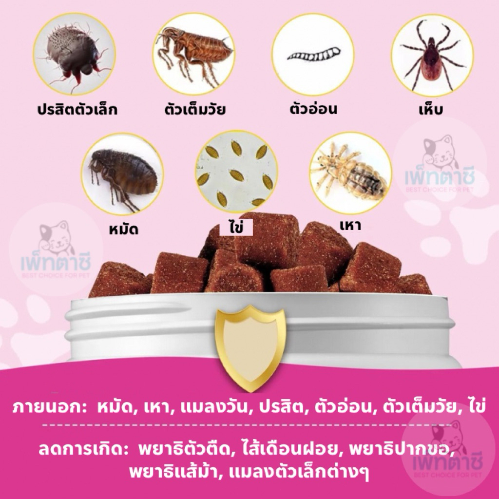 Worafy Flea & Tick กำจัด เห็บ หมัด เหา พยาธิ พยาธิตัวตืด พยาธิแส้ม้า ไข่แมลงวัน รวมถึงปรสิตอื่นๆ