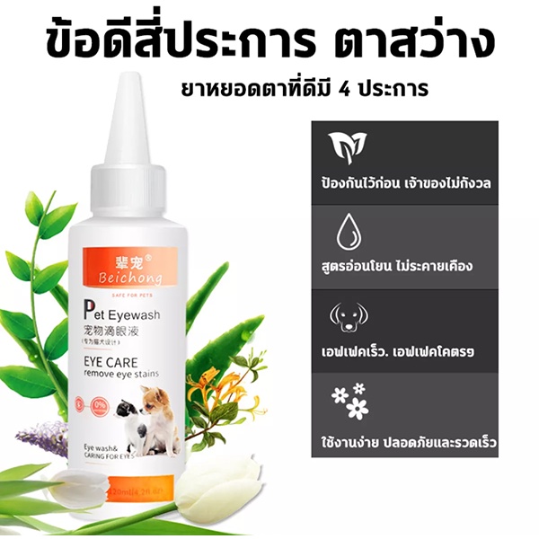 BeiChong เช็ดตาแมว เช็ดคราบน้ำตา น้ำยาเช็ดคราบน้ำตา สำหรับแมวและสุนัข กำจัดรอยน้ำตา ขี้ตา ไม่เจ็บตา
