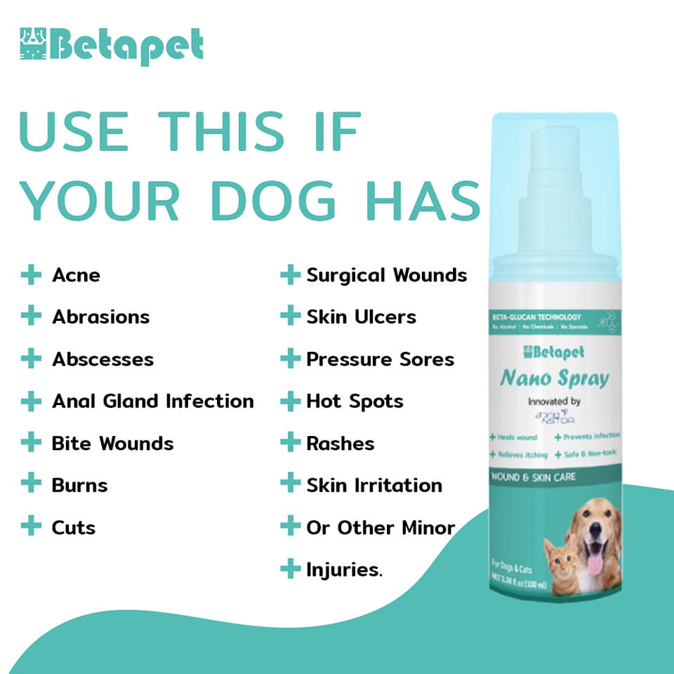 BETAPET Nano Spray สเปรย์นาโน รักษาโรคผิวหนัง เชื้อรา ลดอาการคัน สำหรับสัตว์เลี้ยง 100 ml.