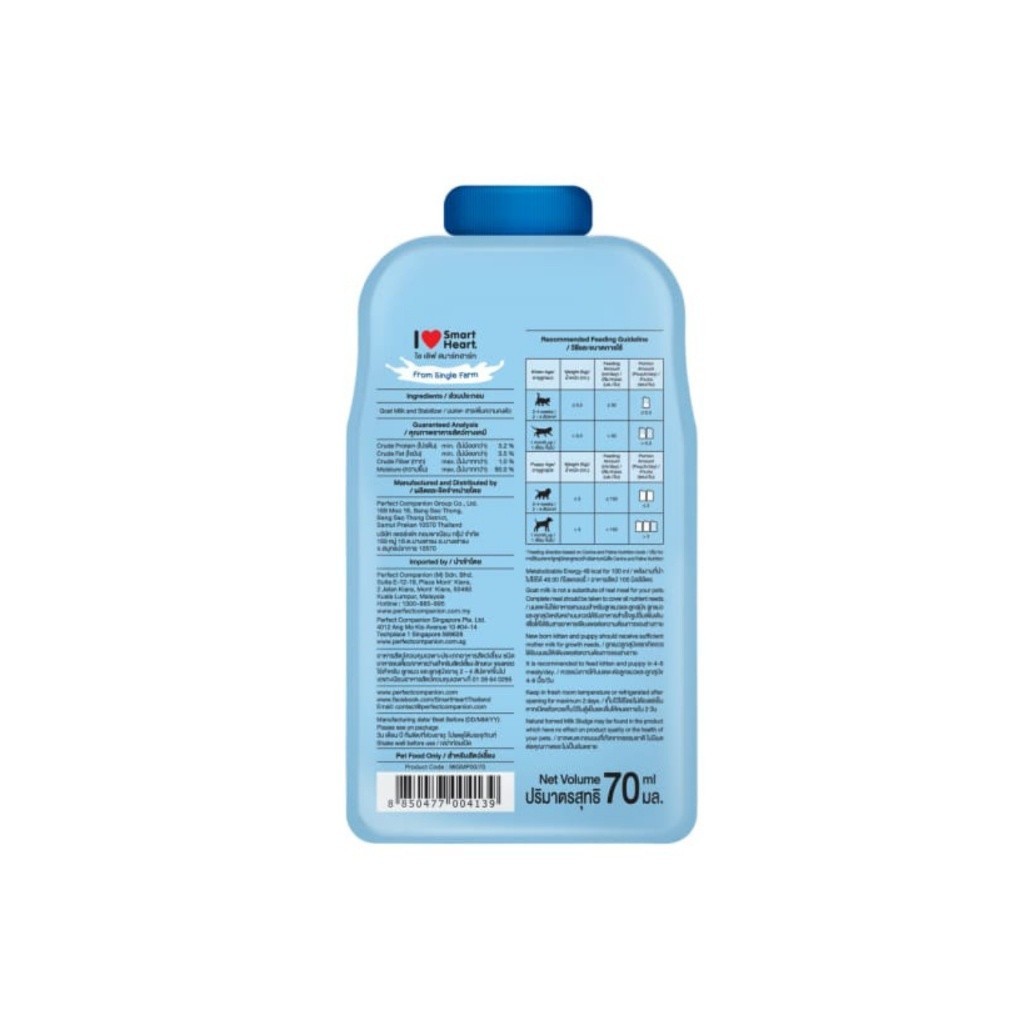 [ยกโหล 12 ซอง] I Love Smart Heart นมแพะสำหรับสัตว์ 70ml นมแพะสเตอริไลส์ บำรุงสุขภาพหัวใจ สำหรับแมว และสุนัข