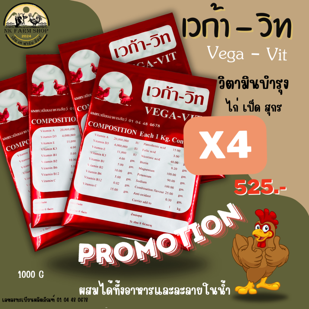 เวก้า-วิท VEGA-VIT x4 วิตามินและแร่ธาตุ บำรุงไก่ เป็ด สุกร