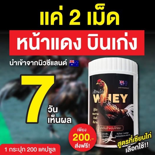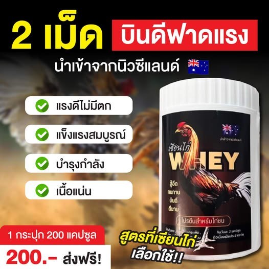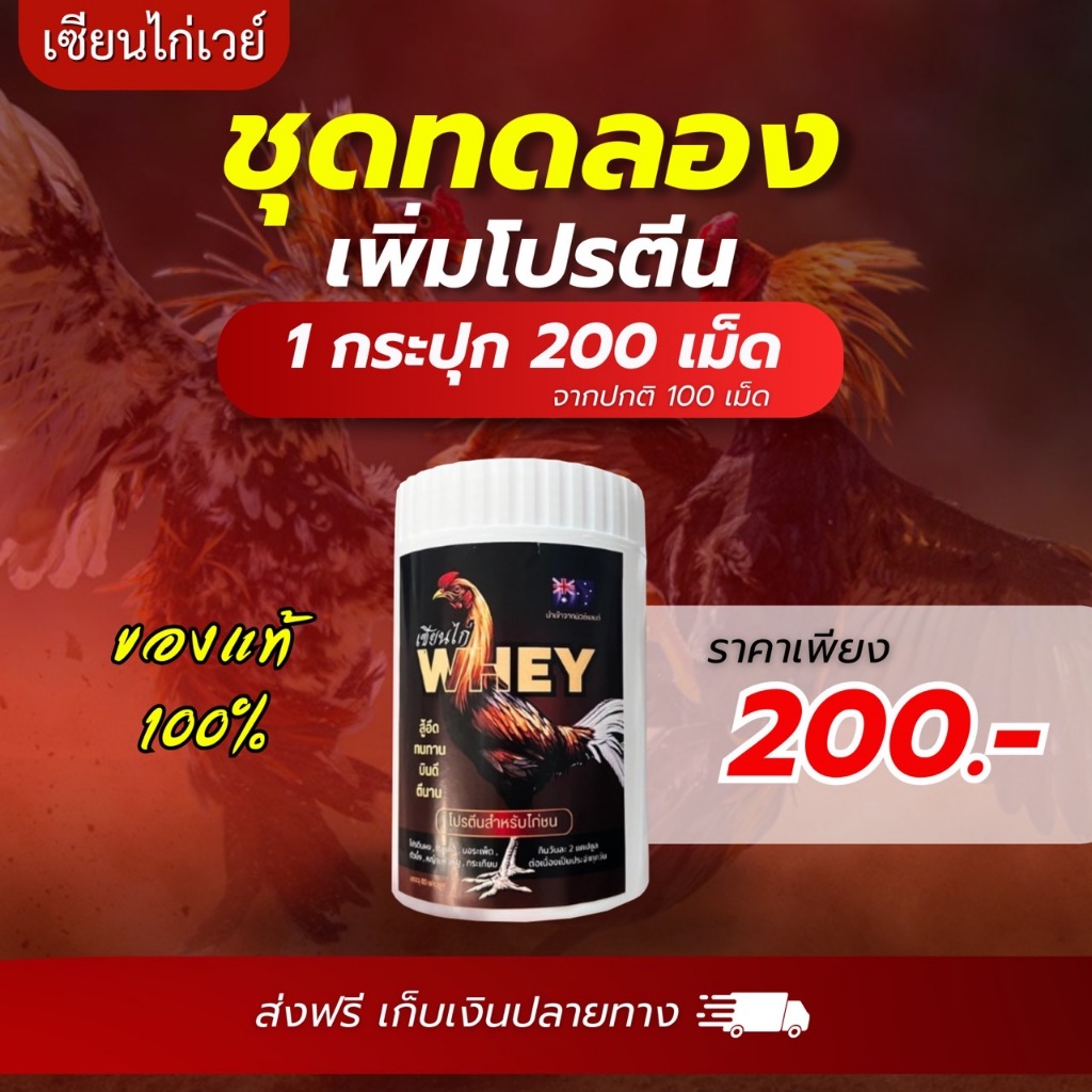 เวย์โปรตีนสำหรับไก่ บินดีตีแรง หน้าแดง เสริมกล้ามเนื้อ เซียนไก่เวย์ 1 กระปุก 200 เม็ด(ปกติ 100 เม็ด)
