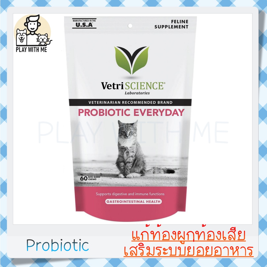 ✅พร้อมส่ง✅ Probiotic Everyday VetriScience 60ชิ้น โพรไบโอติก แมว เสริมระบบย่อยอาหาร แก้ท้องผูกท้องเสีย USA