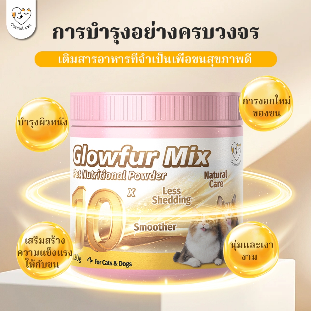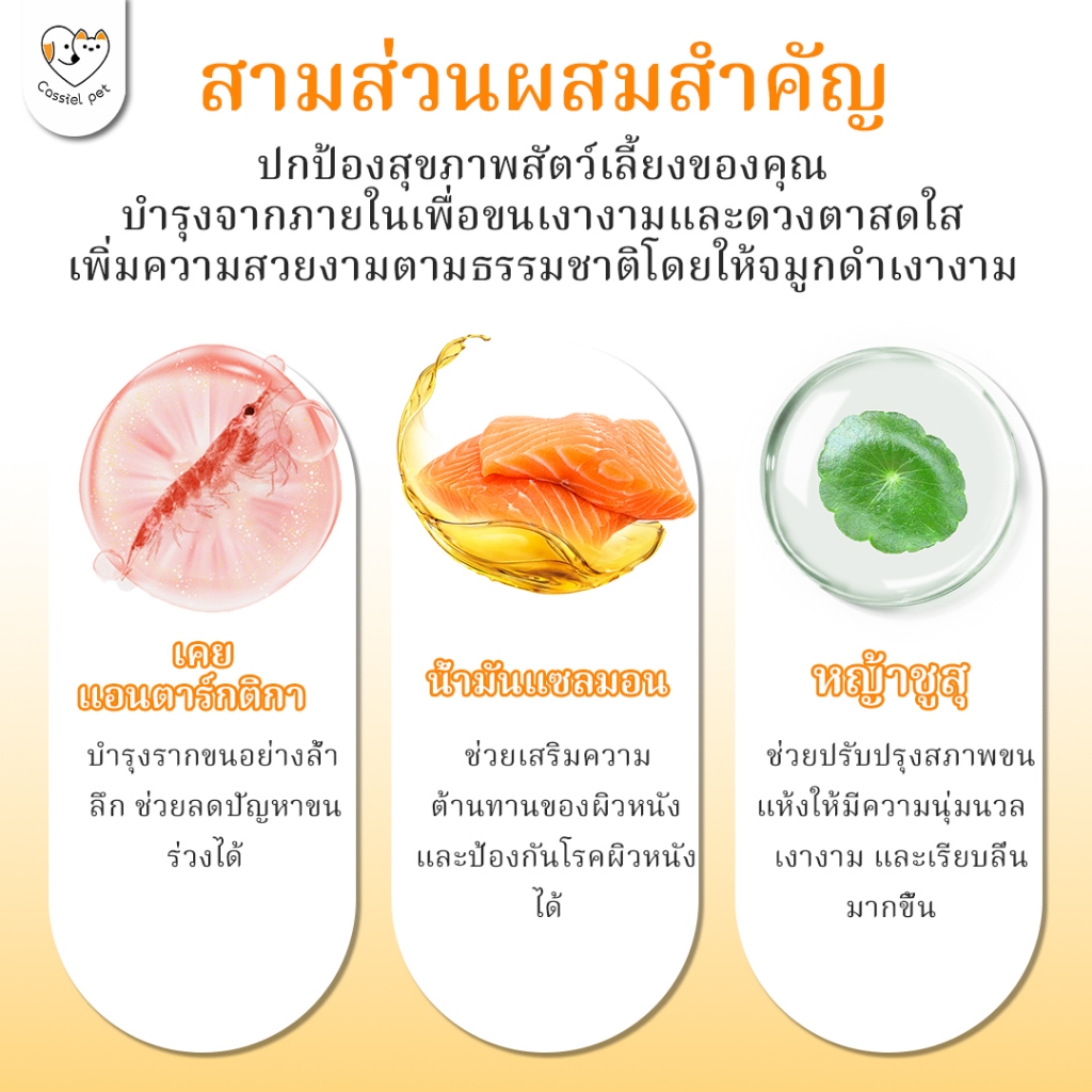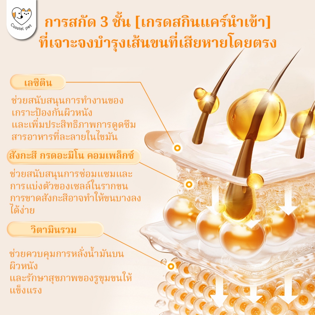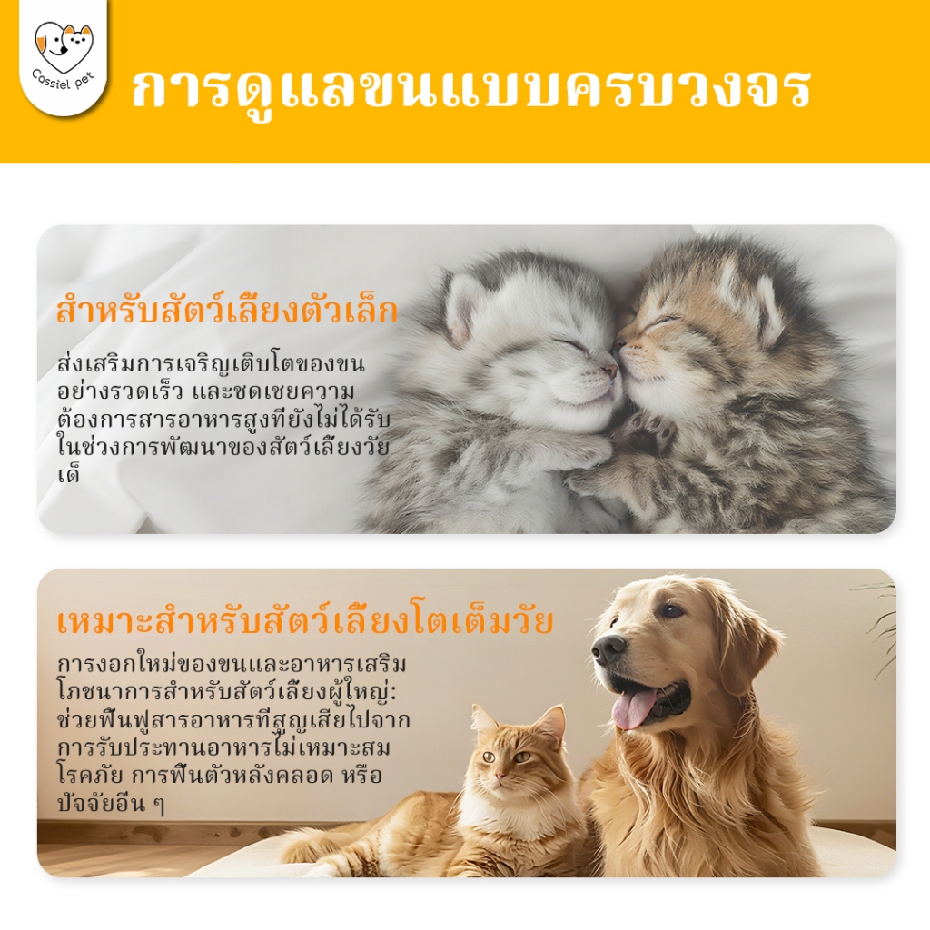 Cassiel สัตว์เลี้ยงแมวสุนัขกรูมมิ่งผงบำรุงเส้นผมวิตามินโปรตีนผงอาหารเสริม omega biotin