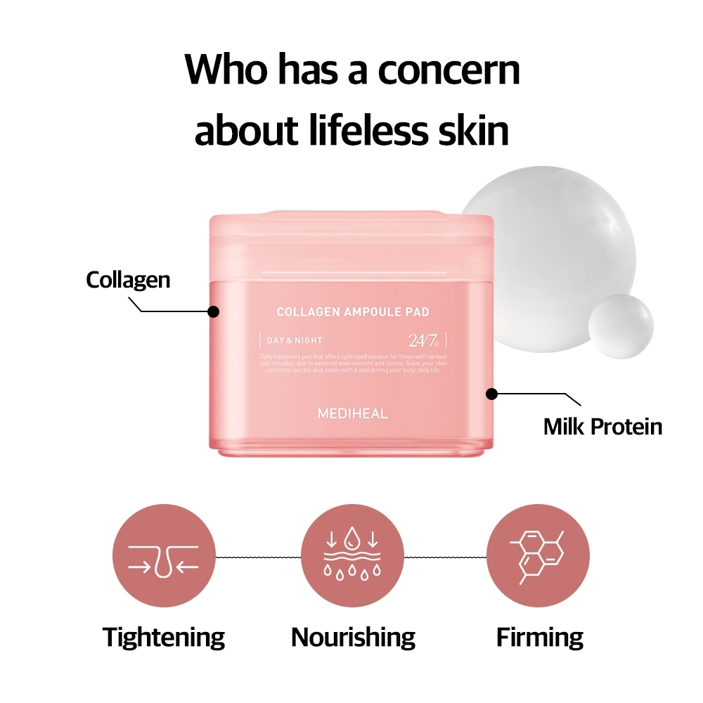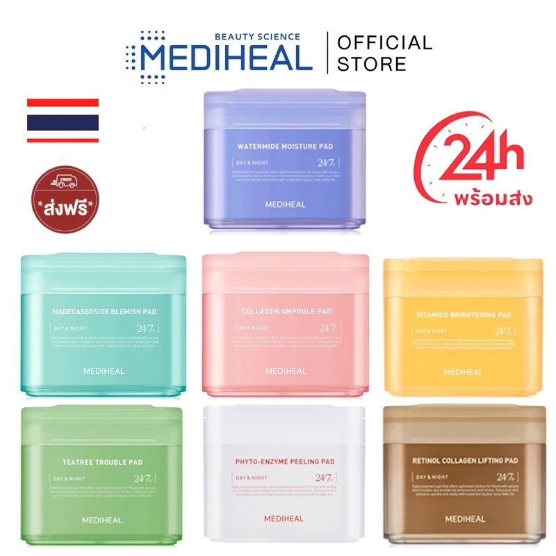 【ของแท้ 100%】MEDIHEAL Toner Pad โทนเนอร์แพดสี่เหลี่ยม แพดลดจุดด่างดำสูตร แผ่นโทนเนอร์ Toner Pad Collagen