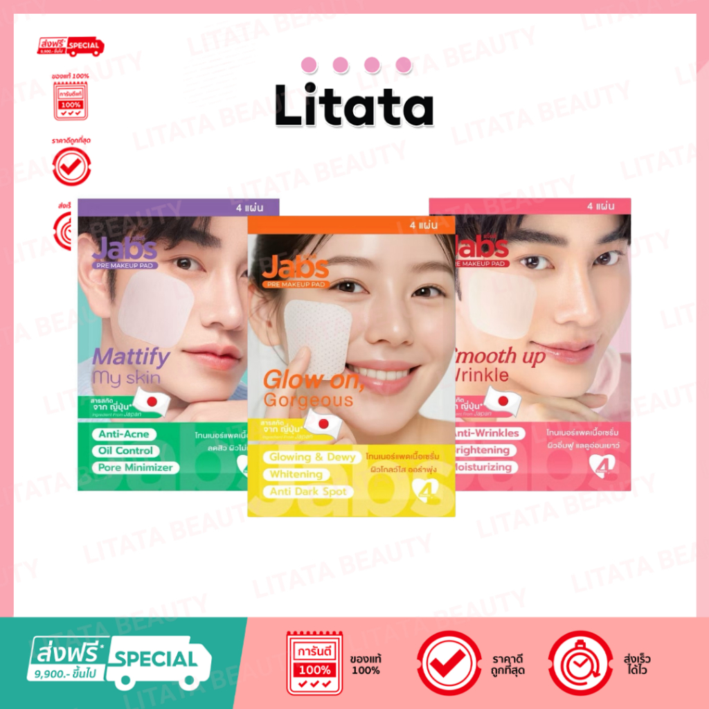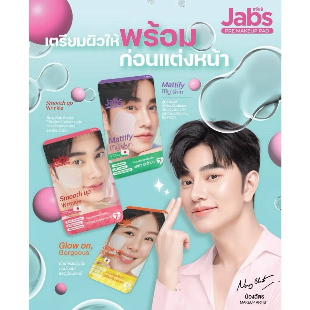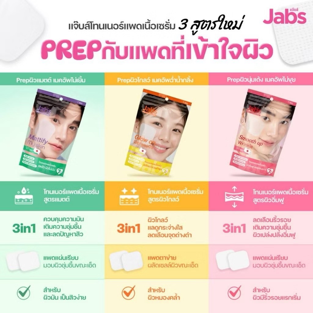 [ซอง] Jabs Pre Make Up Pad Glow on, Gorgeou/Smooth Up Wrinkle/Mattify My Skin แจ๊บส์ พรี เมคอัพ 4 แผ่น
