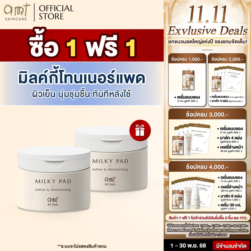 [1 FREE 1] AMT Milky Toner Pad – โทนเนอร์แพดเนื้อน้ำนม เติมความความชุ่มชื้น มอบผิวโกลว์สวย