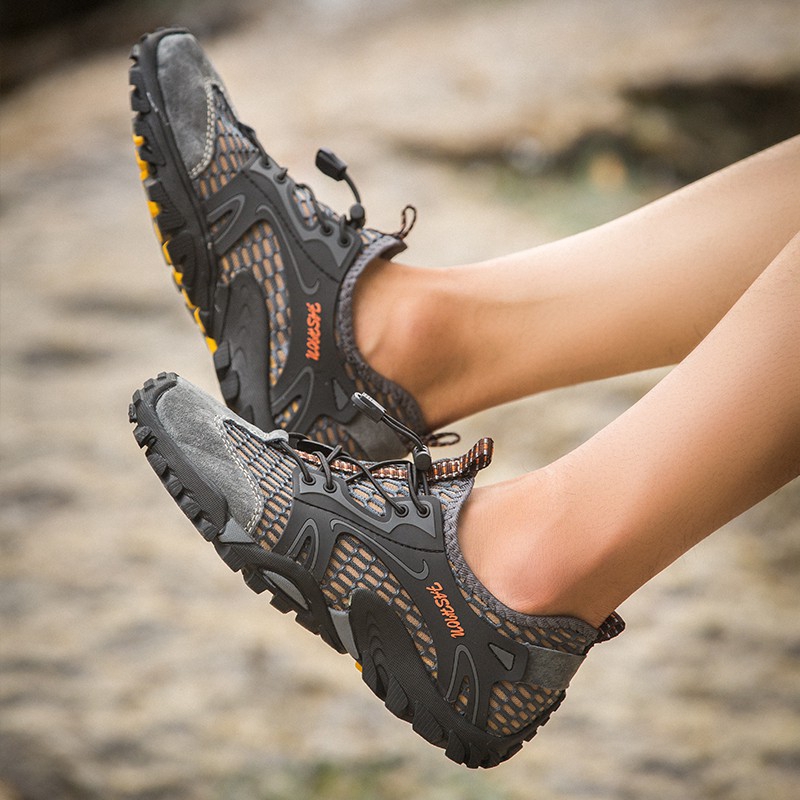 【เป็นที่นิยม】ผู้ชาย กลางแจ้งปีนเขารองเท้ากีฬาระบายอากาศและป้องกันการลื่นรองเท้าลุยน้ำ