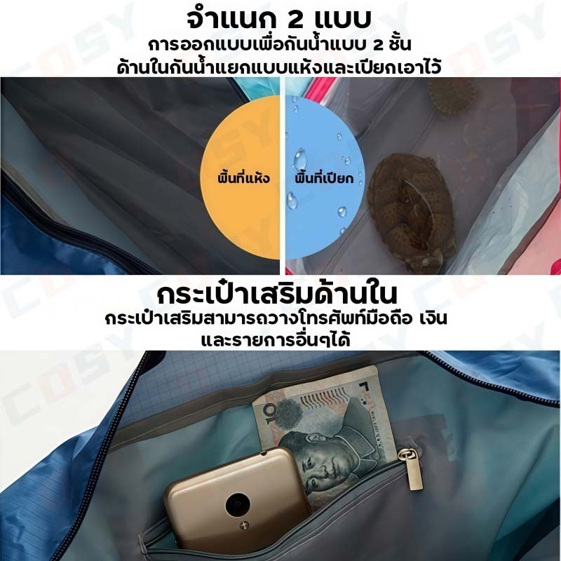 CCZedo กระเป๋าว่ายน้ำ แบ่งช่องแห้งและเปียก ออกแบบให้แห้งไว กันน้ำได้ดี เหมาะสำหรับการเดินทางและทำกิจกรรมกลางแจ้ง