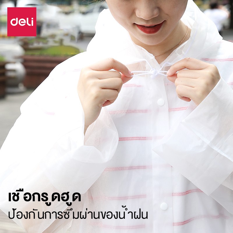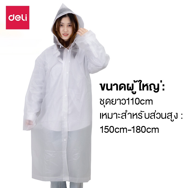 Deli เสื้อกันฝน EVA ชุดกันฝน สีขาว คุณภาพดี กันน้ำ แบบหนา Rain coats