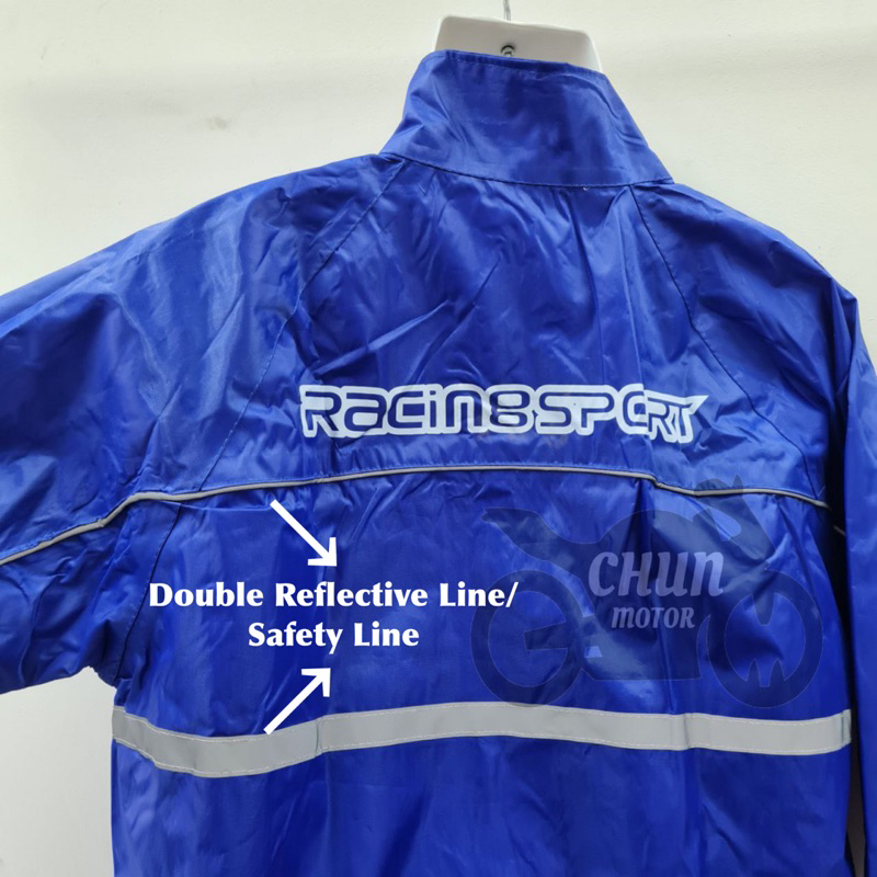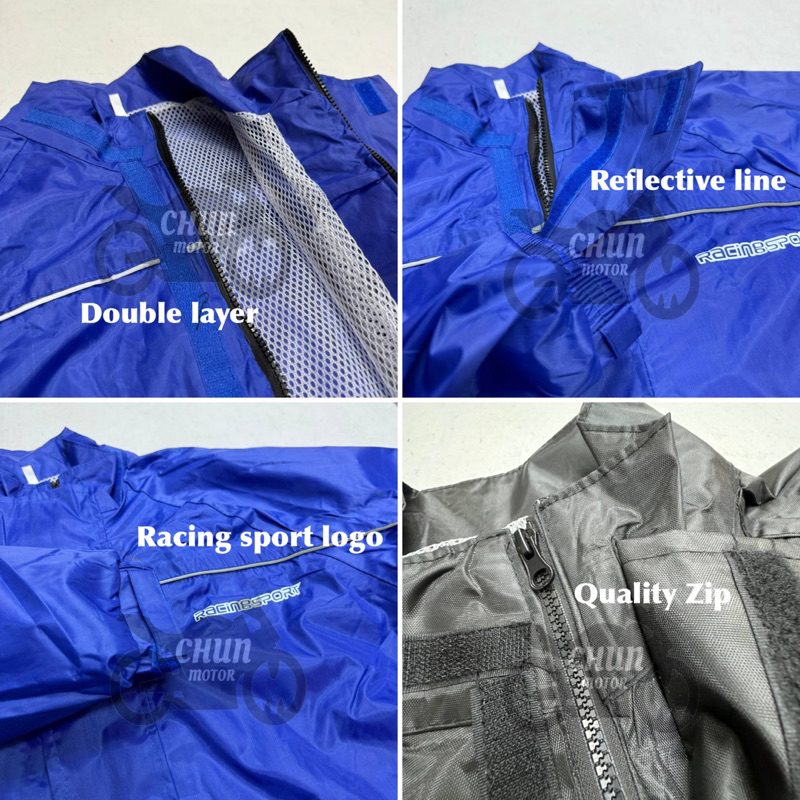 (4สี)New Alitech ชุดกันฝน เสื้อกันฝน สีกรมท่า มีแถบสะท้อนแสง รุ่น หมวกติดเสื้อ Waterproof Rain Suit