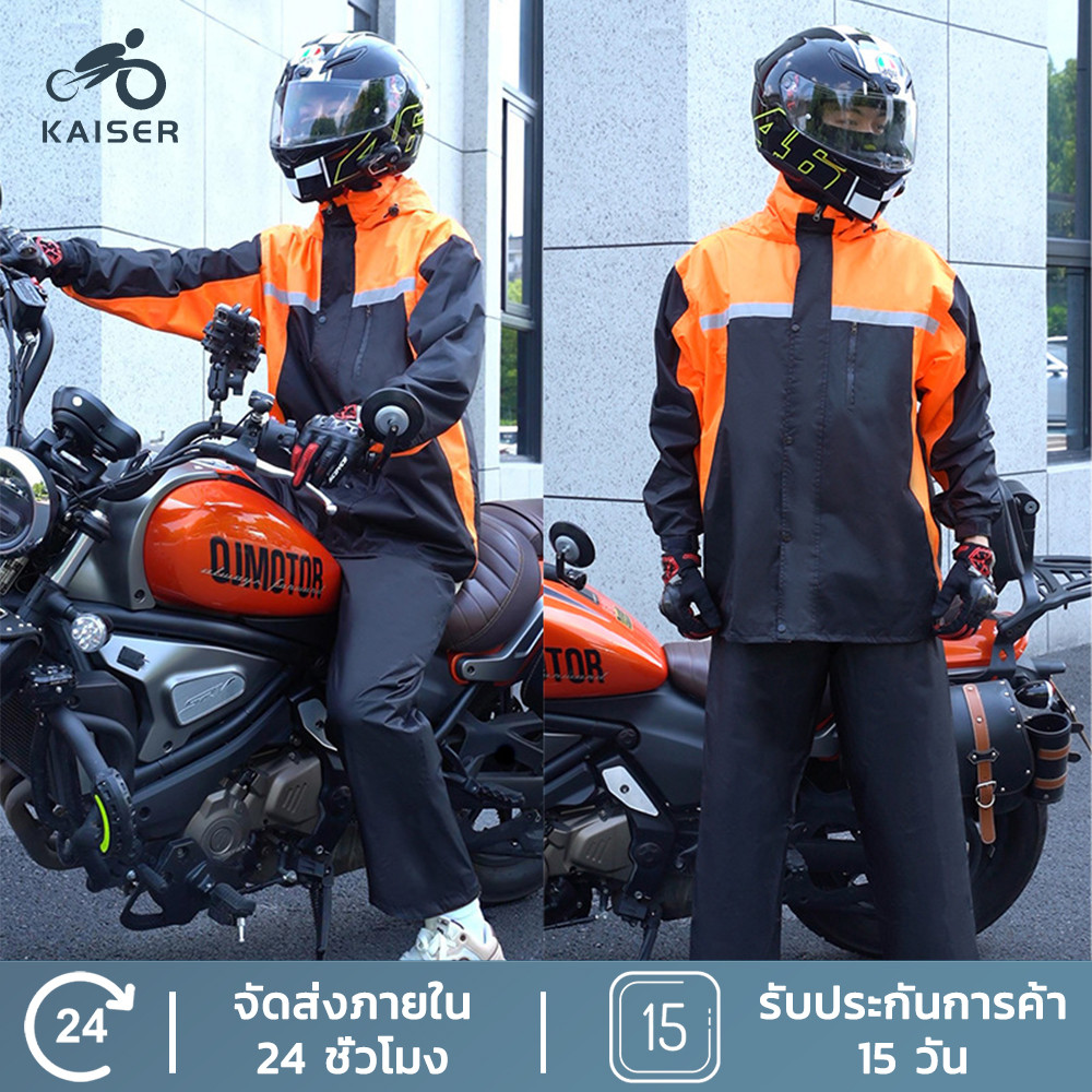 KAISER เสื้อกันฝน มีแถบสะท้อนแสง Waterproof Rain Suit ชุดกันฝนแบบมีที่กันหน้า แยกเสื้อและกางเกง เหนียว อย่างดี ทนทาน