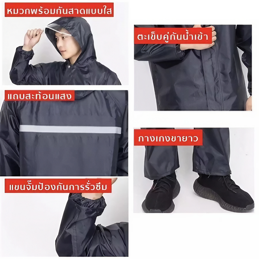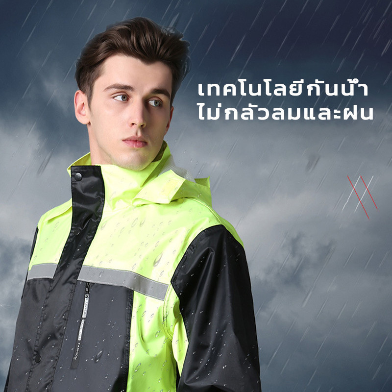 COMETเสื้อกันฝน เสื้อกันฝนผู้ใหญ่ กันน้ำได้สองเท่า ผ้าPVCที่แข็งแกร่ง และมีความเหนียวที่แข็งแกร่งมาก แถบสะท้อนแสงสุดเท่