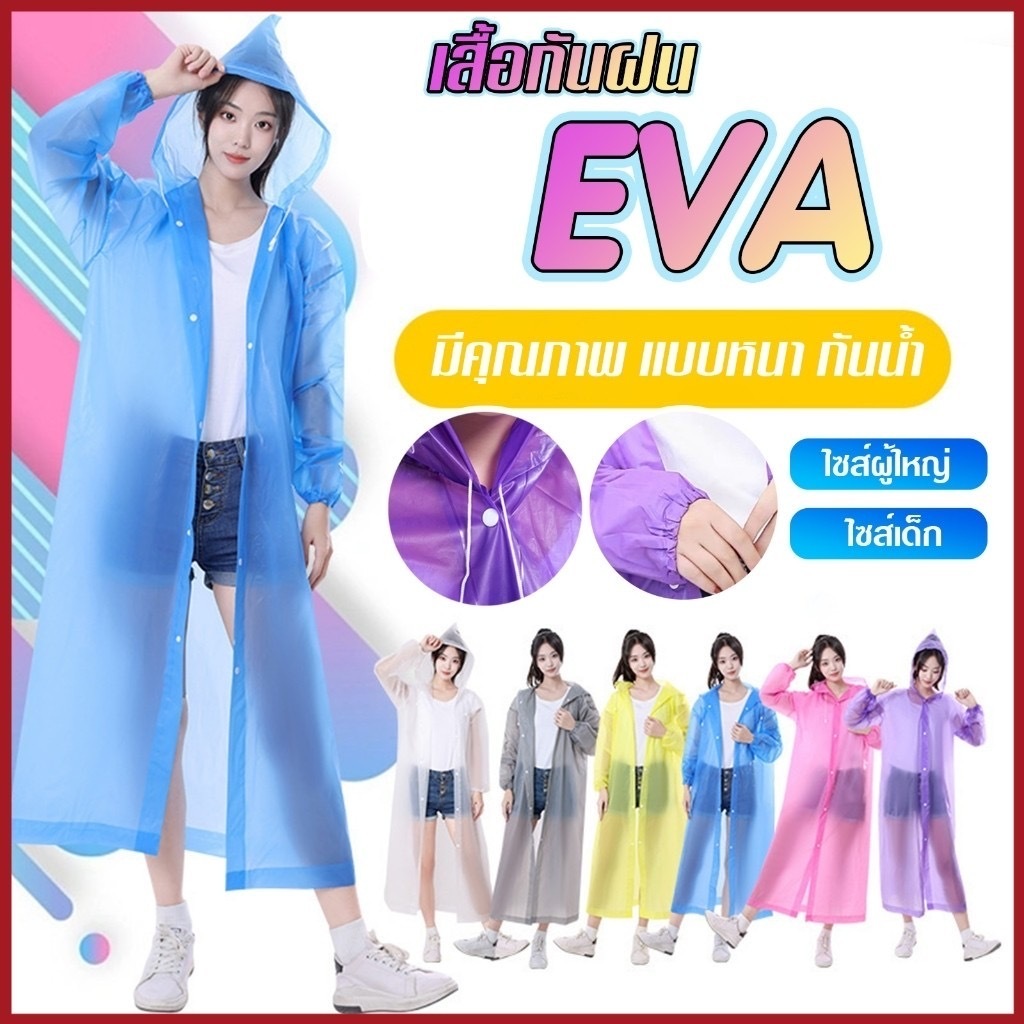 EVA เสื้อกันฝนแฟชั่น สไตล์เกาหลี Rain coats เสื้อกันฝนหญิง-ชาย เพิ่มความหนา ใช้งานได้หลายครั้ง