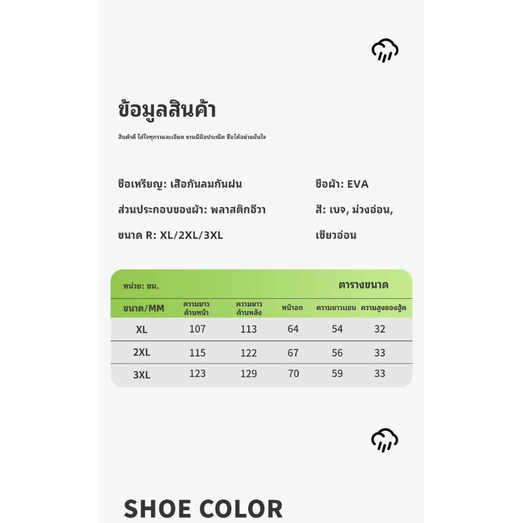 EVA เสื้อกันฝนหญิง-ชายแบบยาวใส่สบาย ใส่ง่ายมีหมกแขนยาวแบบติดเข้าหากันราคาถูกๆเลยมาแรงในขนาดนี้ (สินค้าพร้อมส่ง)