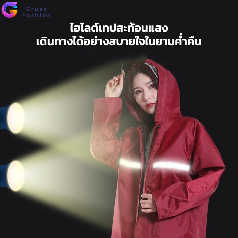 Crush พร้อมส่ง ชุดกันฝน ชุดเสื้อและกางเกงกันฝน มีแถบสะท้อนแสง เสื้อกันฝน รุ่นหมวกติดเสื้อ เสื้อกันฝนมอเตอร์ไซค์ เสื้อกัน