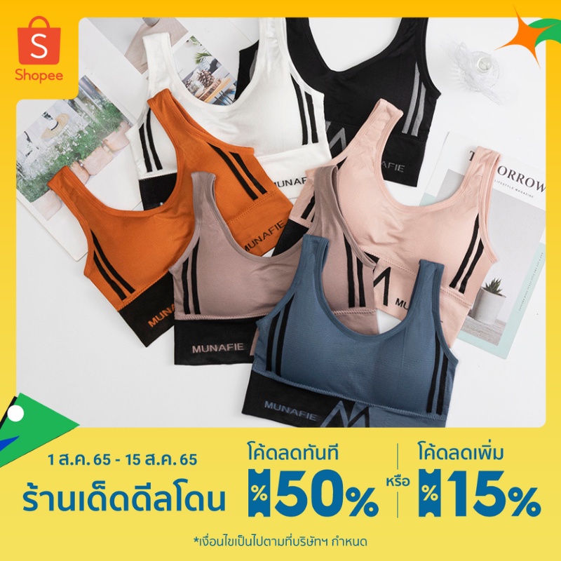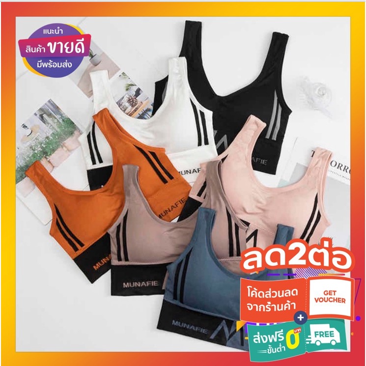 [ใส่ MTCKL66ลด20%]!!NEW Sport bra MUNAFIE รุ่นใหม่ ใส่สบาย ผ้านุ่ม ไม่อึดอัด แท้