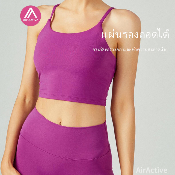 AirActive สปอร์ตบรา JoySkin Bra เสื้อโยคะสำหรับผู้หญิง ผ้าขัดสองด้าน สายไขว้หลังแบบ Racerback ชายเสื้อกว้าง พร้อมฟองน้ำถอดได้