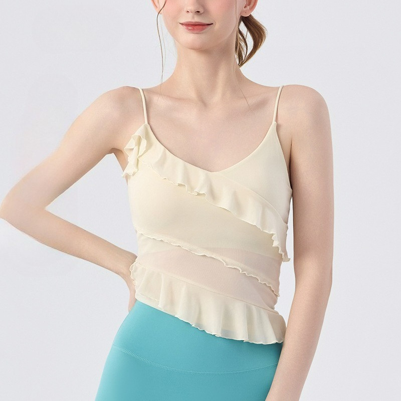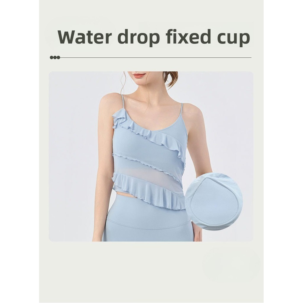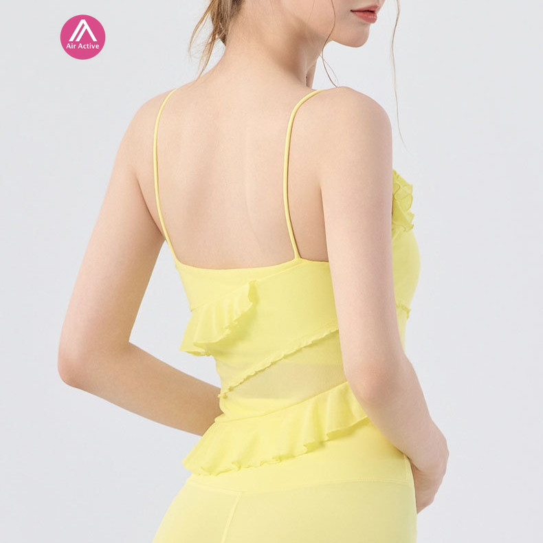 AirActive Yoga Sports Bra Fixed Pads Mesh-stitching And Ruffle Trim Breathable