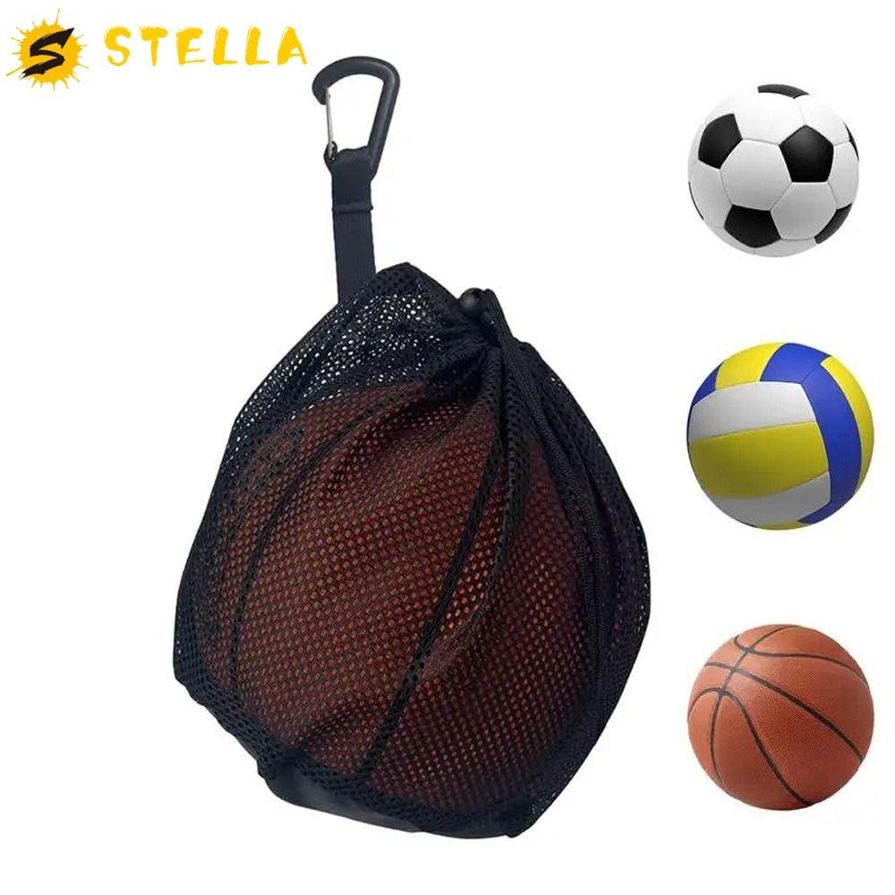 Stella กระเป๋าเก็บบาสเก็ตบอล, คลิปบน Drawstring Ball ถุงตาข่าย, กระเป๋าถือกีฬากลางแจ้ง Ball Holder ผ้า Oxford Single Ball Bag Traveling Gym