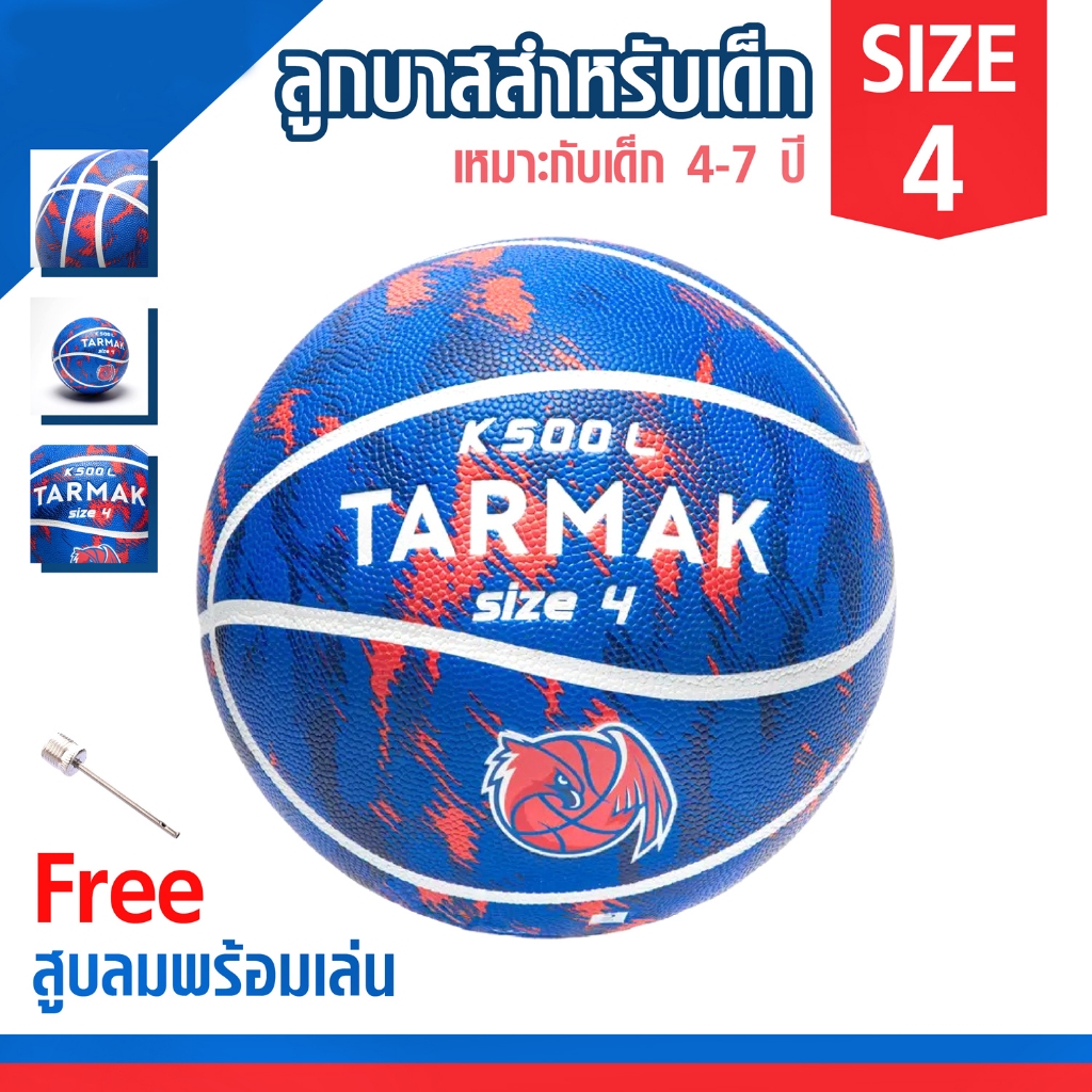 ลูกบาส ลูกบาสเก็ตบอล ลูกบาสเก็ตบอลสำหรับเด็ก สูบลมพร้อมเล่น+ฟรีหัวสูบ TARMAK เบอร์ 4 รุ่น K500 สีน้ำเงินแดง เหมาะกับเด็ก