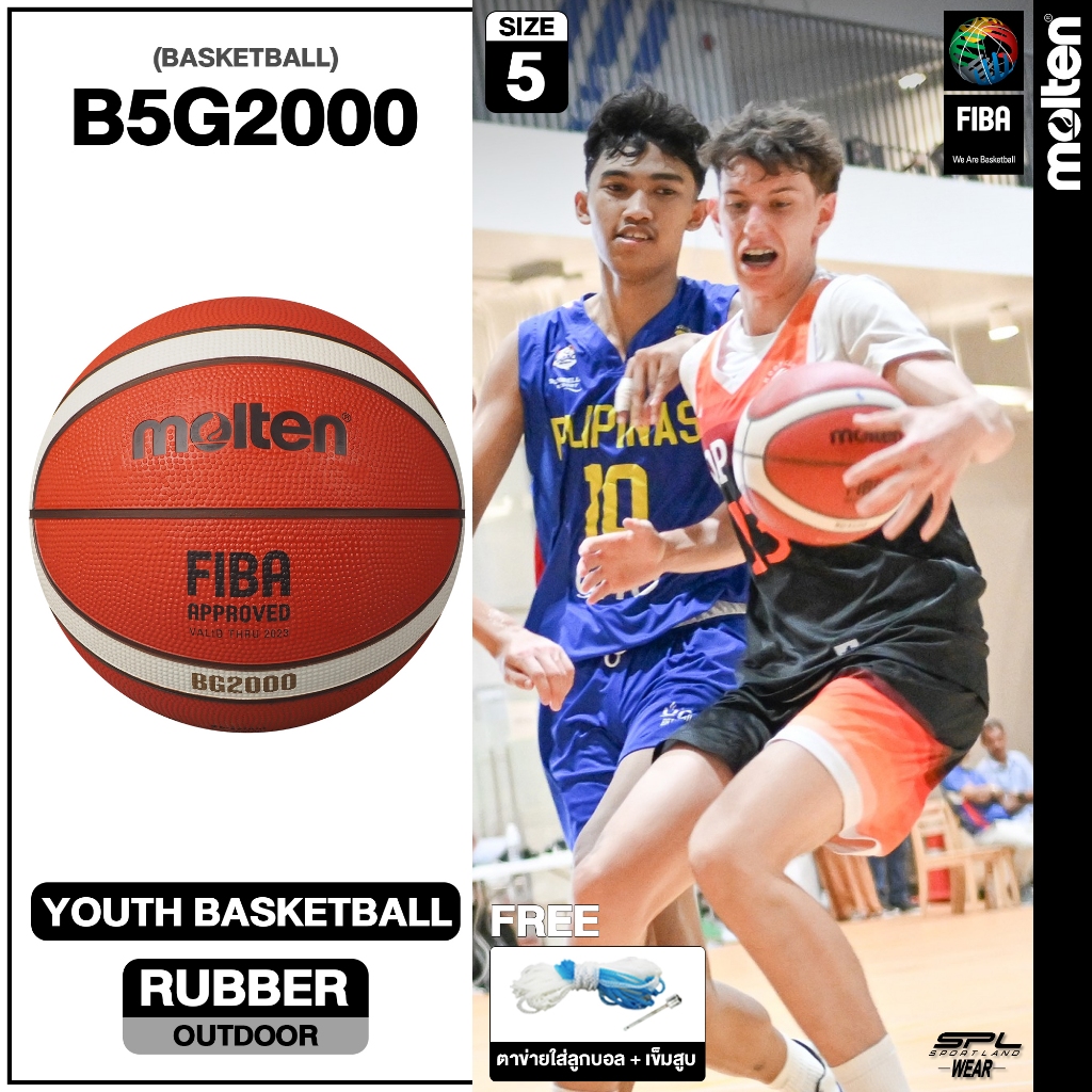 MOLTEN ลูกบาสเก็ตบอลยาง Basketball RB th B5G2000 FIBA (550) แถมฟรี เข็มสูบ+ตาข่าย