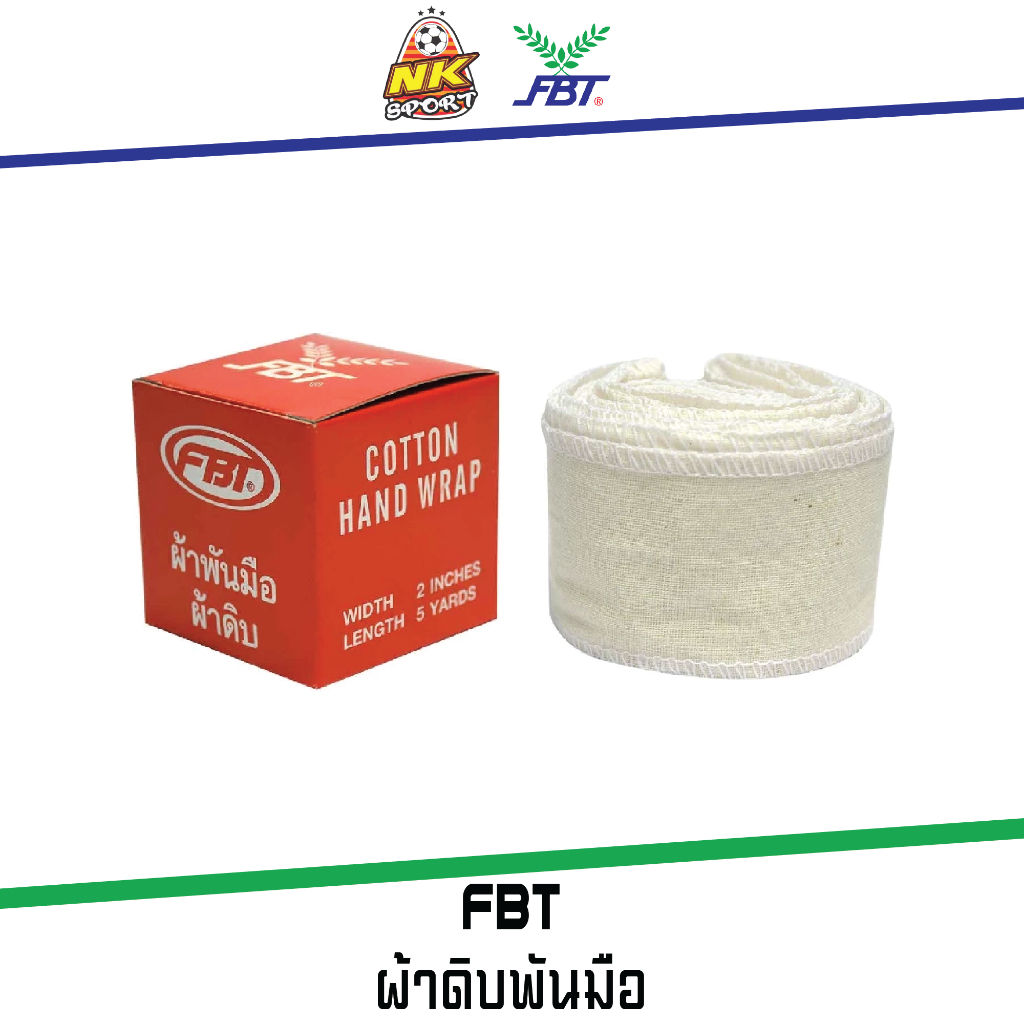 FBT ผ้าพันมือ ผ้าพันมือผ้าดิบ Cotton Hand wrap ป้องกันอาการบาดเจ็บ รหัส 46308 1ชิ้น บรรจุ 1ข้าง