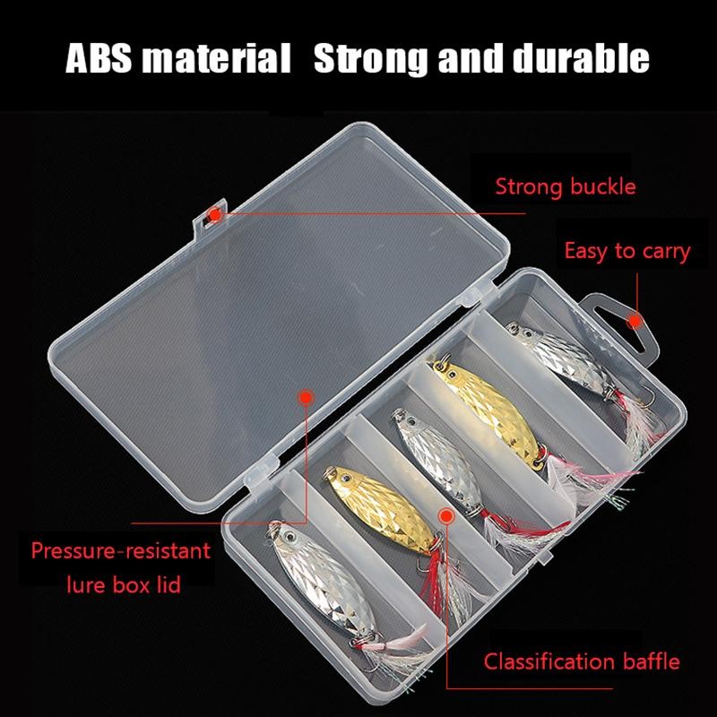 Foursun Luya กล่อง 5 ช่อง Fishing Tackle Organizer พลาสติกใสกล่องอุปกรณ์เสริมเหยื่อปลอม Ray กบ Luya เหยื่อกล่องตะขอตกปลากล่อง TH