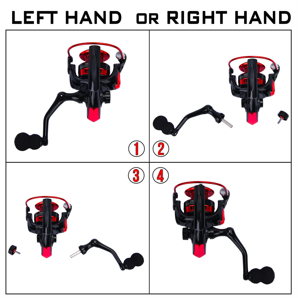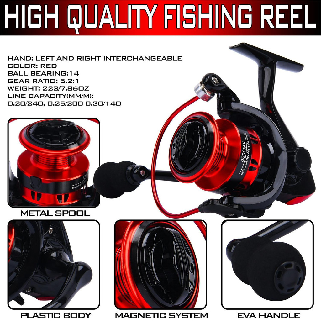 FRRTCคันเบ็ดสปินนิ่งคอมโบคันเบ็ดสีแดง 2 ส่วนพร้อมรอก 3000 ขนาด 5.2:1ชุดคันเบ็ดสปินนิ่ง