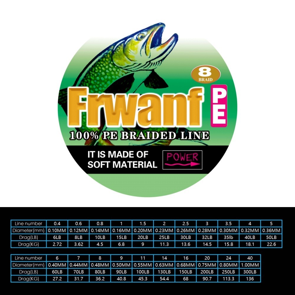 Frwanf สายตกปลา 300 เมตร 8 เส้น Super Strong สายตกปลา X8 PE สายตกปลาถัก 0.4#-40# 6-300LB