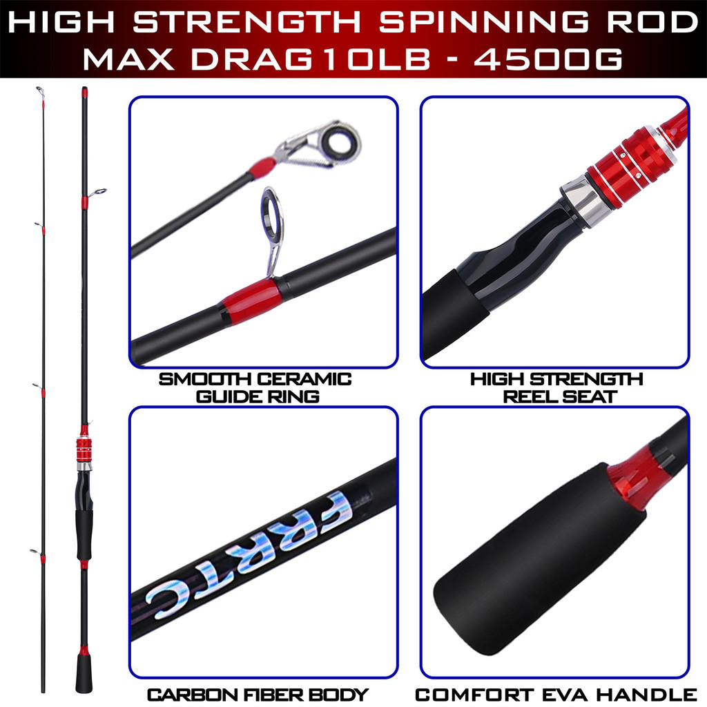 FRRTC ชุดคันเบ็ดและรอก 1.65 ม. 1.80 ม. รอกตกปลาแบบแกนหมุนโลหะ