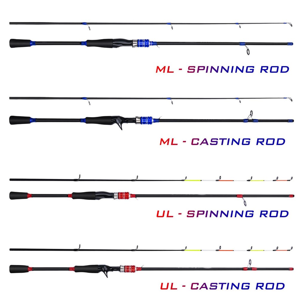 Frrtc เบ็ดตกปลาสีแดงและสีน้ําเงิน Ultra Light Rod คันเบ็ดขนาดกลาง 1.65/1.80m Spinning Casting Rod คาร์บอนไฟเบอร์ 2 ส่วนเบ็ดตกปลา