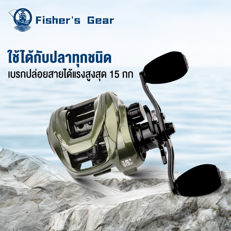 Fisher’s รอกเบส รอกเบสหยดน้ำ แรงลาก 9 กก. อัตราทดเกียร์ความเร็วสูง 7.2:1 น้ำจืด เก็บพักลึก ตกปลาทะเล