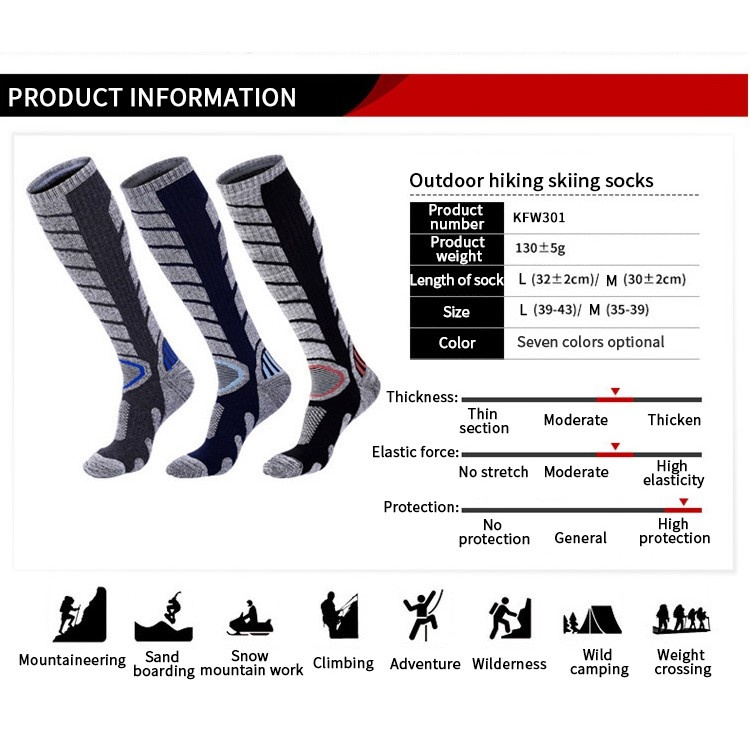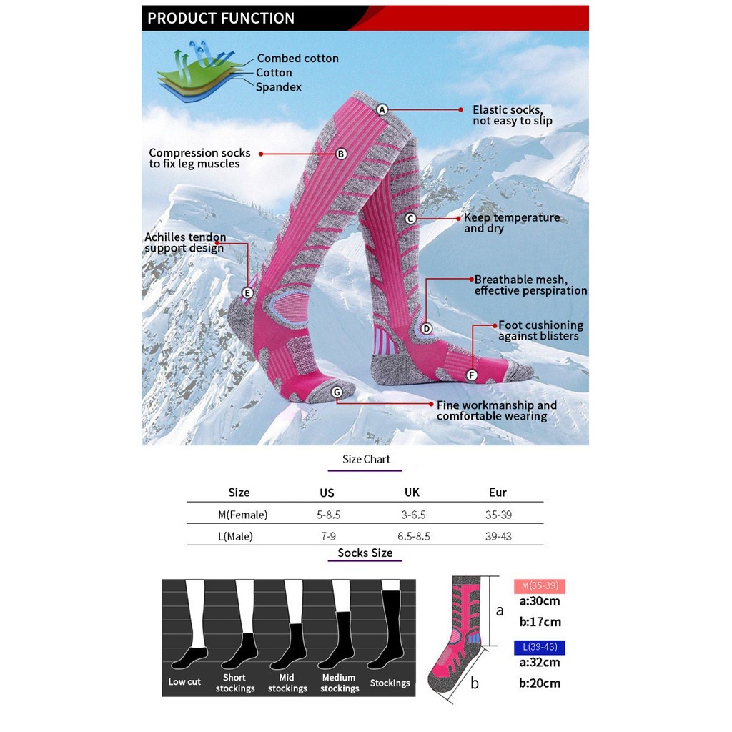 ถุงเท้าสกีแขนยาวสำหรับสโนว์บอร์ดและการเดินป่า อุ่นและออกแบบโดยมืออาชีพ เหมาะสำหรับทั้งเพศชายและเพศหญิงในฤดูหนาว