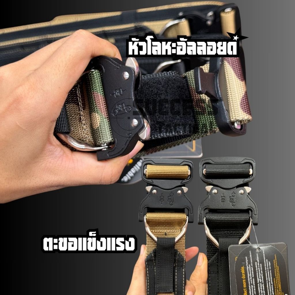 Wosport เข็มขัดสนาม2ชั้น หัวโลหะ เข็มขัดยุทธวิธีทหาร เอว31-38 นิ้ว
