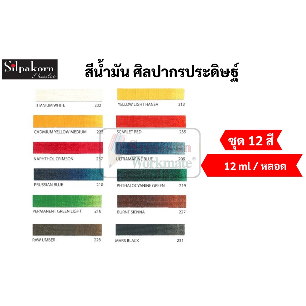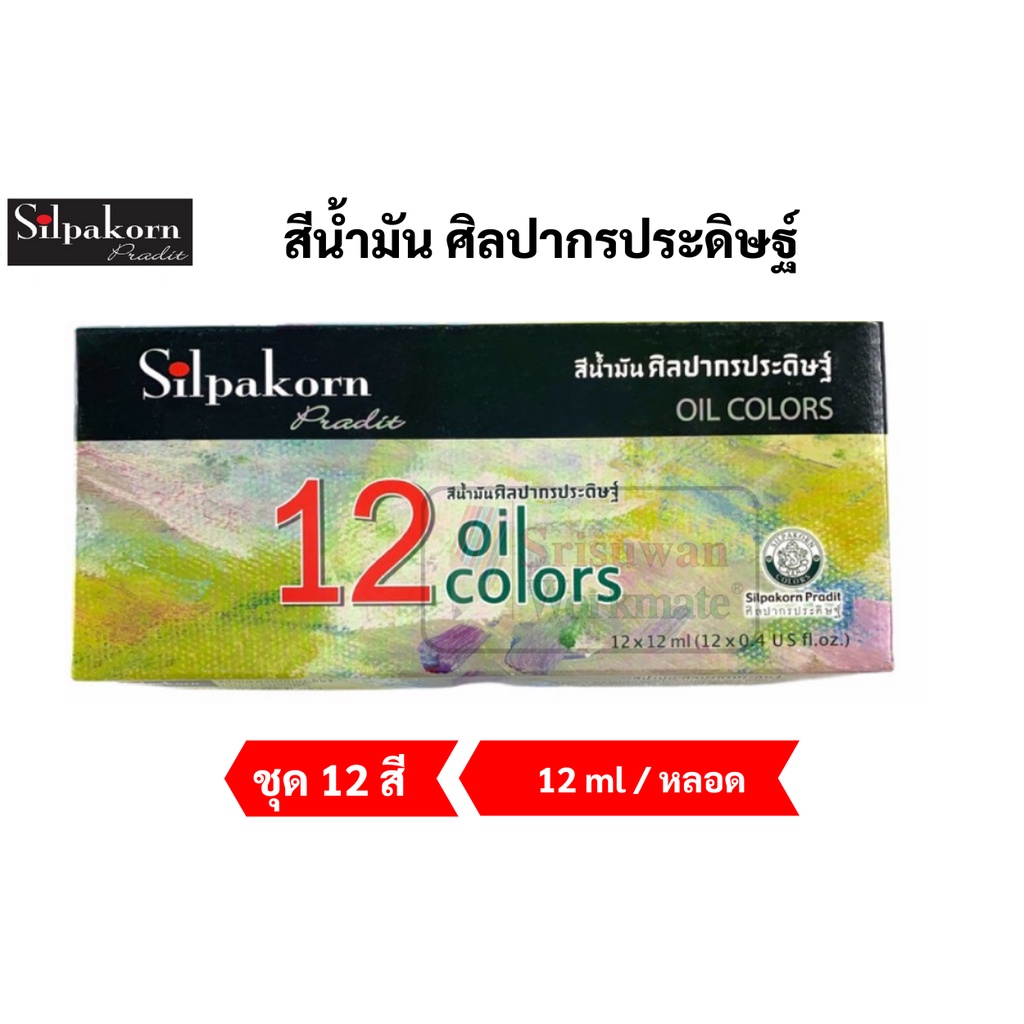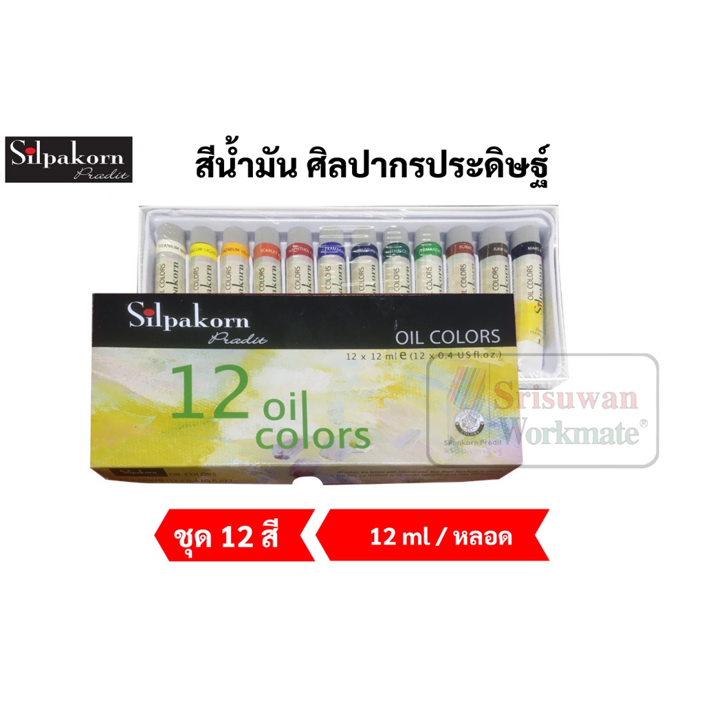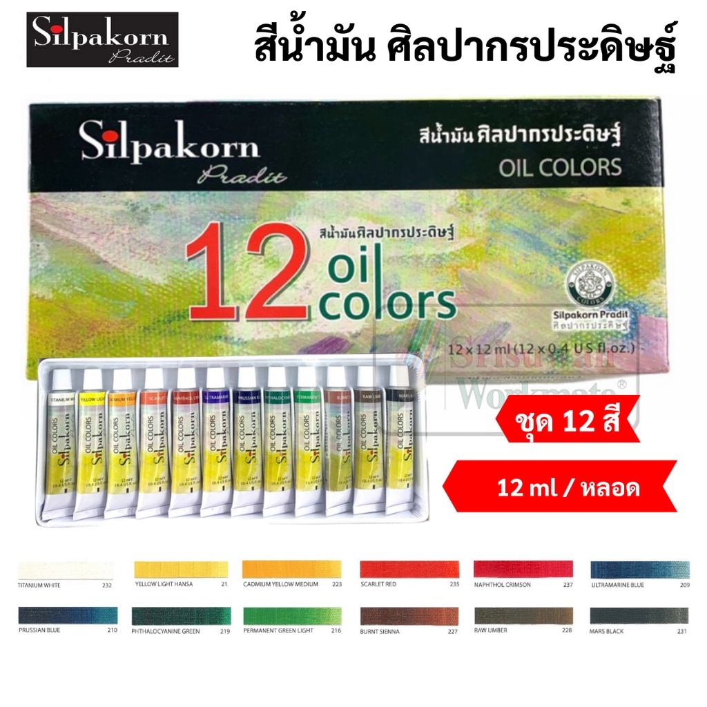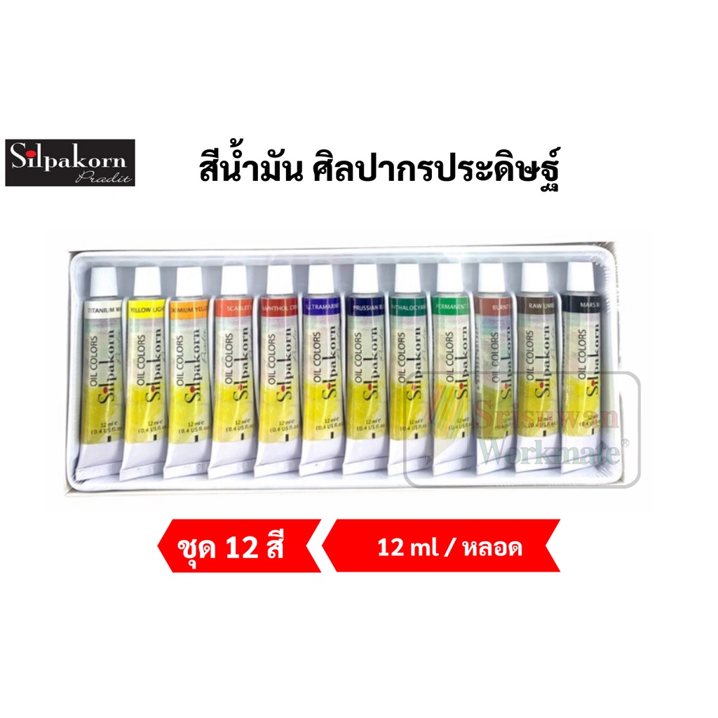 ชุดสีน้ำมัน ศิลปากร ชุด 12 สี ขนาด 12 ml/หลอด สีน้ำมันศิลปากร สีน้ำมัน อาร์ทติสเกรด Silpakorn Oil Colors Set