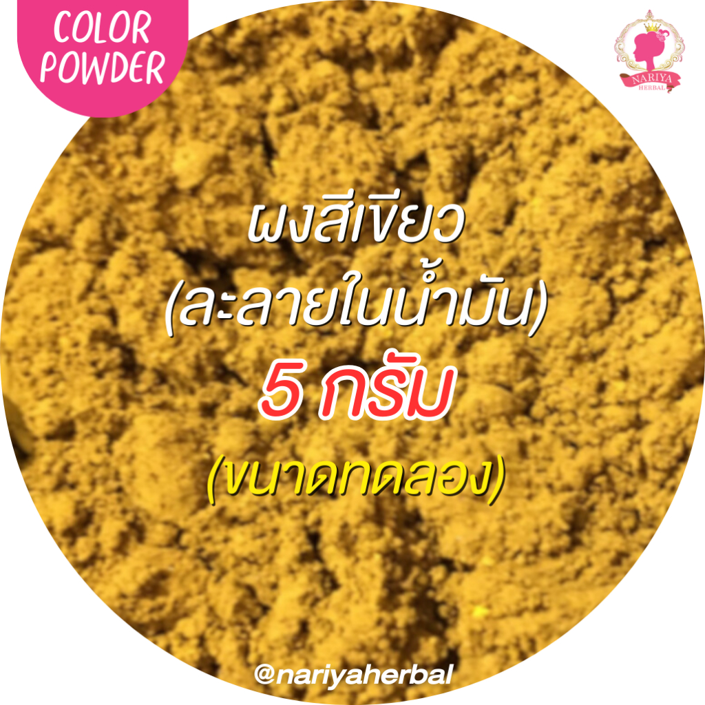 สีเขียว สีละลายในน้ำมัน ขนาด 5 กรัม แบบผง (บรรจุใส่ถุง) สีผสมน้ำมัน สีทำเทียน ชนิดเข้มข้นคุณภาพสูง
