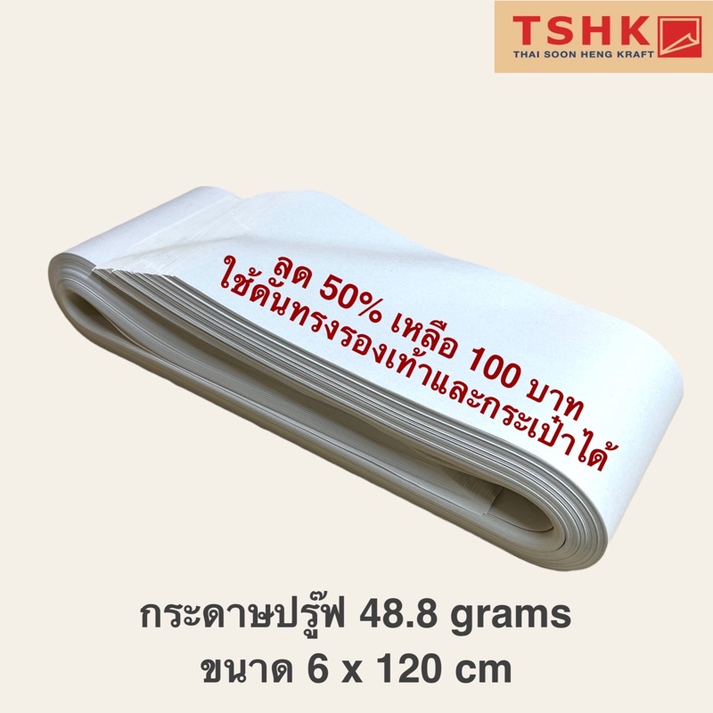 กระดาษปรู๊ฟ 48.8 แกรม ขนาด 15 x 120 cm (350 แผ่น) สำหรับดันทรงสินค้าประเภทกระเป๋า รองเท้า