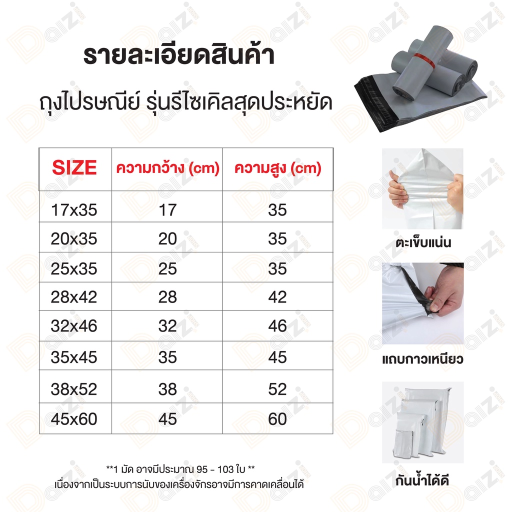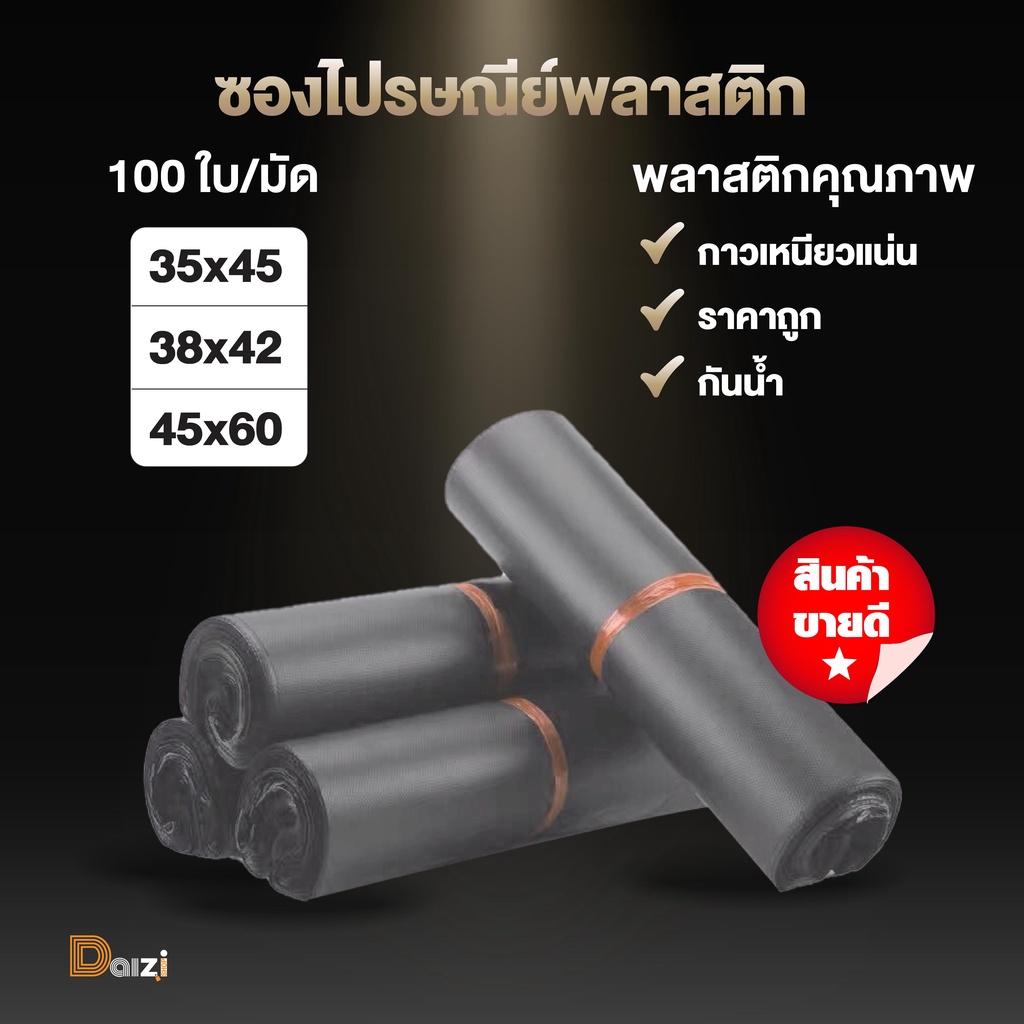 [100ใบ] ซองไปรษณีย์ ถุงพลาสติก สีเทาดำ ขนาดรวมไซร์ ซองไปรษณีย์พลาสติก ถุงไปรษณีย์ ถุงพัสดุแถบกาว ซองพลาสติกกันน้ำ