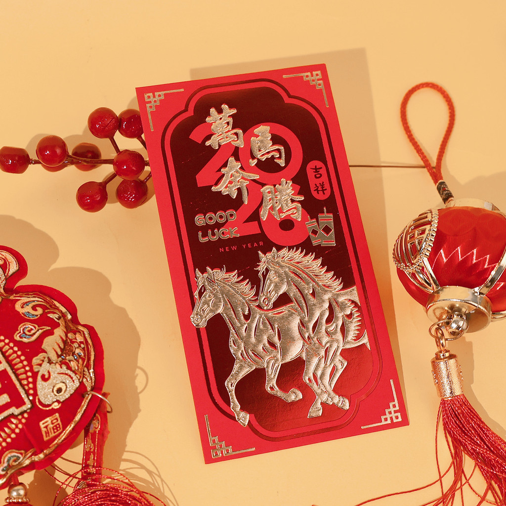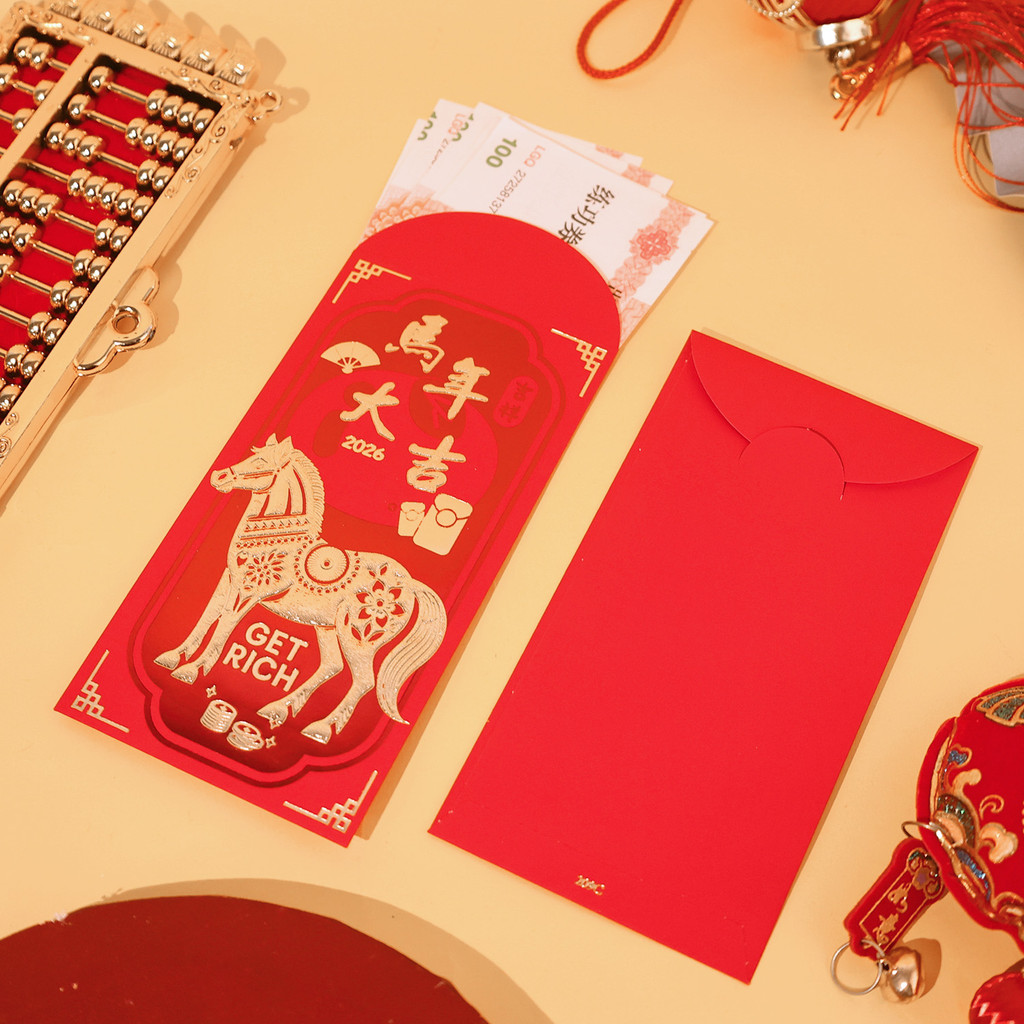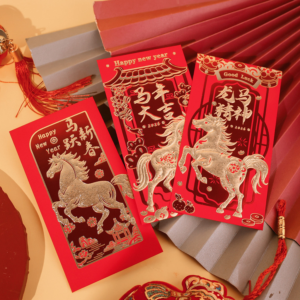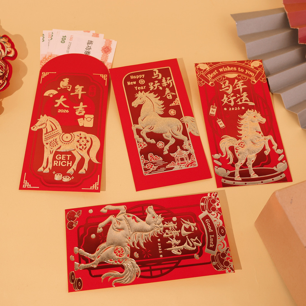 [บ้าน]-ชุดซองกระดาษแดง 24 ใบ ดีไซน์ปีมะเมีย สําหรับปีใหม่จันทรคติ 2026 ซองของขวัญองค์กรและครอบครัว