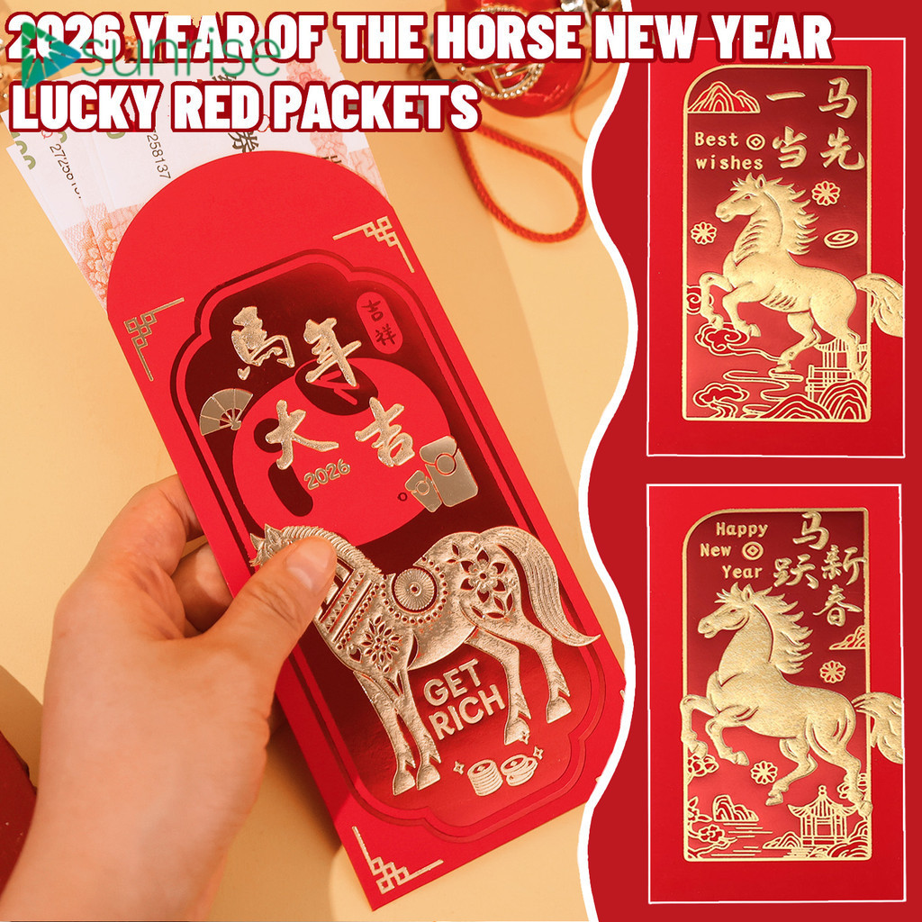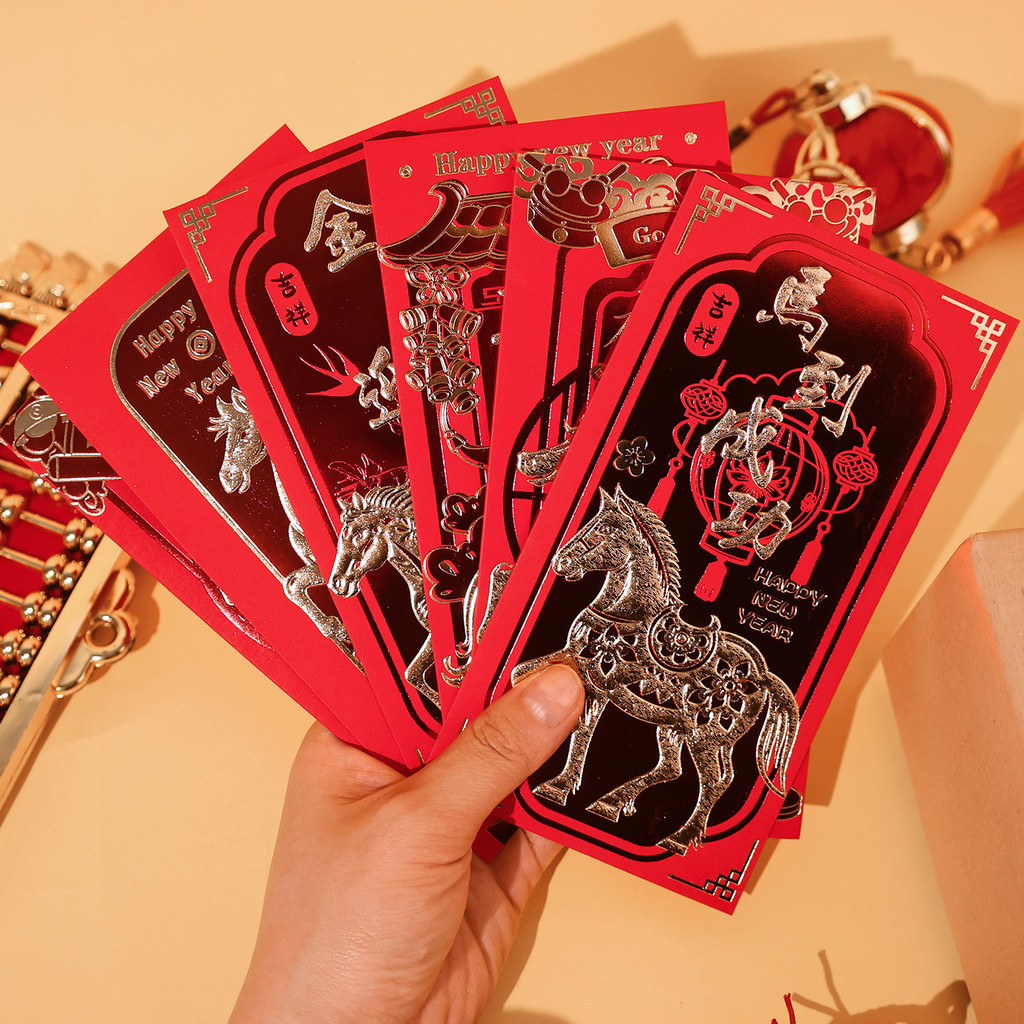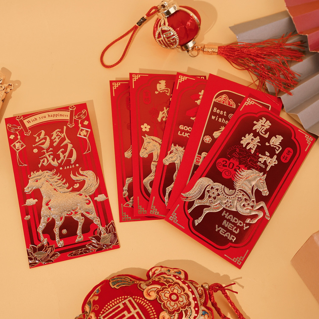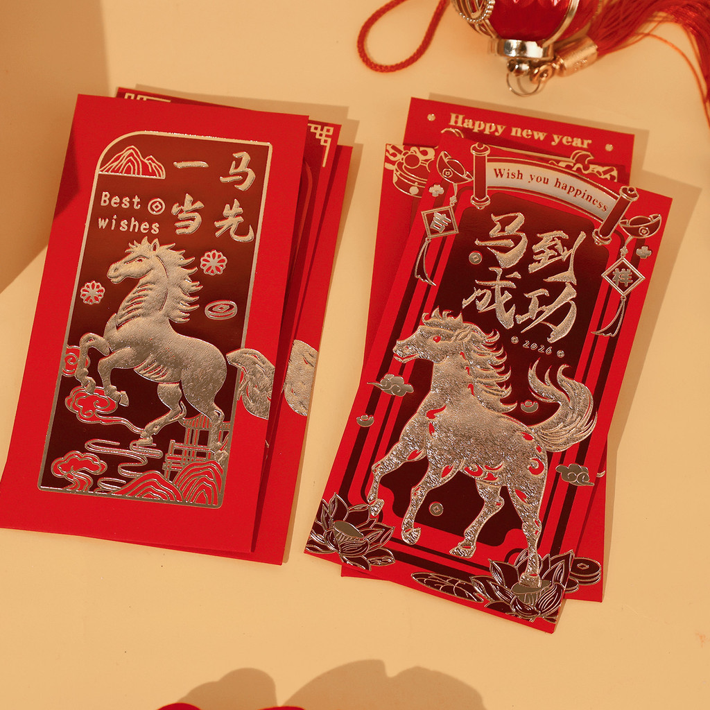 [บ้าน]-ชุดซองกระดาษแดง 24 ใบ ดีไซน์ปีมะเมีย สําหรับปีใหม่จันทรคติ 2026 ซองของขวัญองค์กรและครอบครัว
