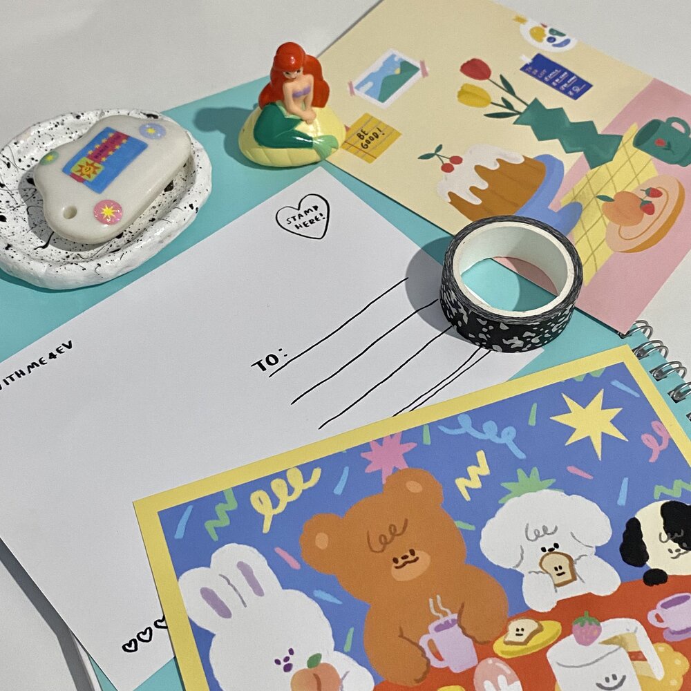 DIE-CUT BLOOMING CARD โปสการ์ดไดคัทรูปดอกไม้ พร้อมซองการ์ดสีฟ้า givememuseums