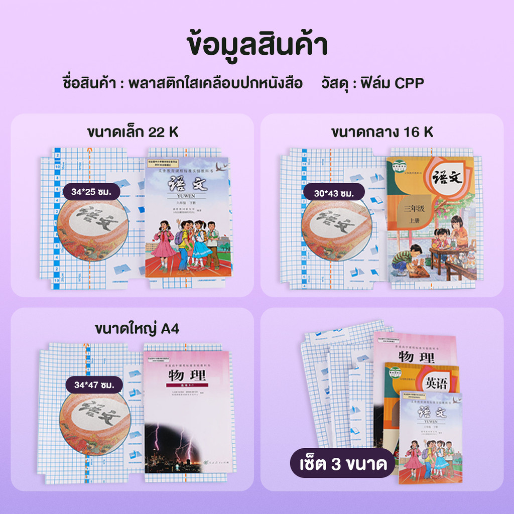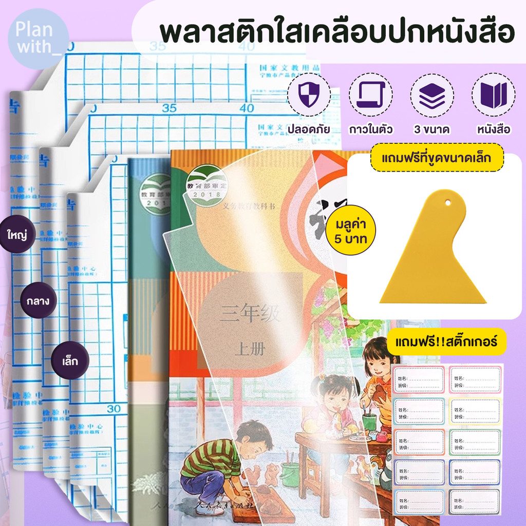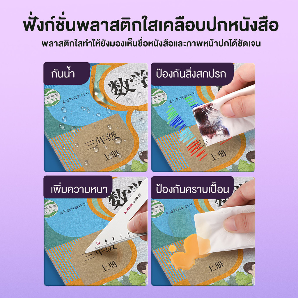 ปกหนังสือแบบแบ่งส่วน เคลือบปกหนังสือ พลาสติกใสเคลือบปกหนังสือ สติกเกอร์ห่อปกหนังสือ เครื่องเขียน แถมฟรี สติ๊กเกอร์ชื่อ