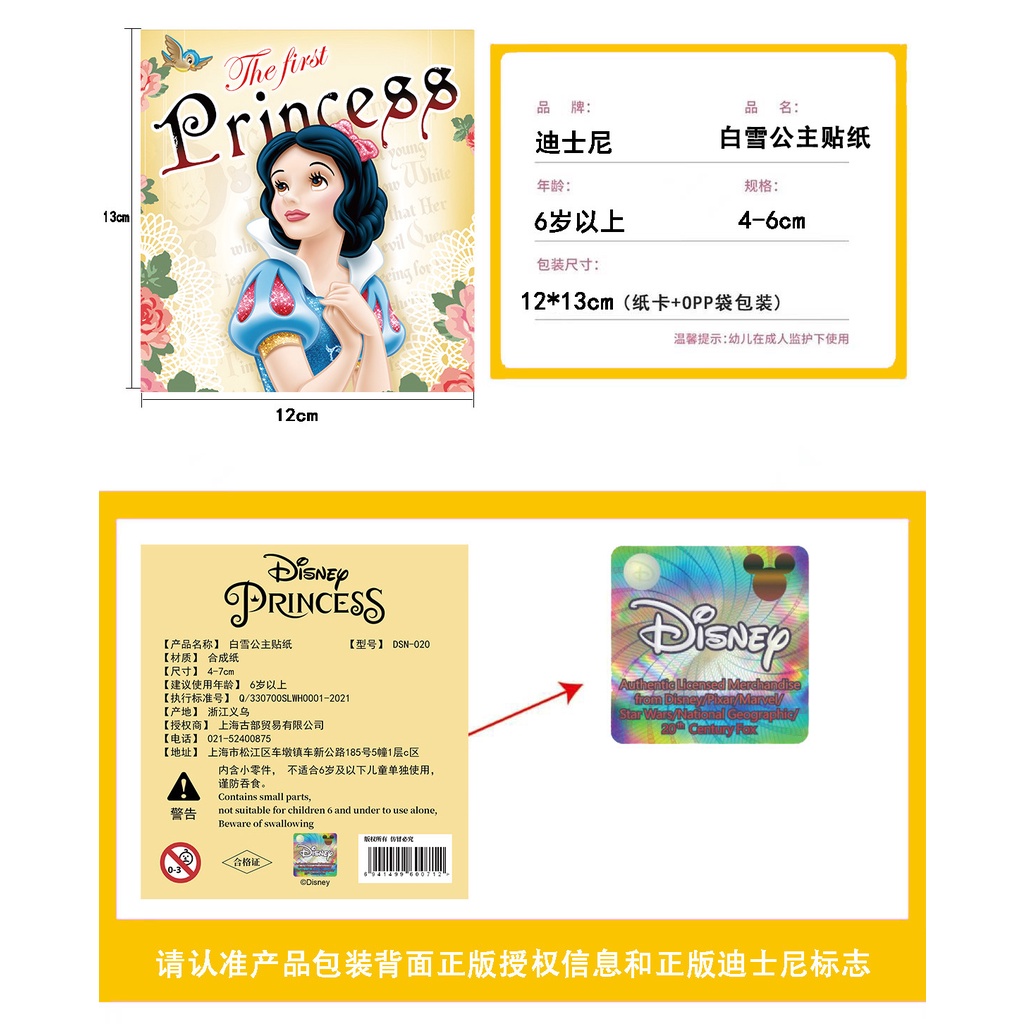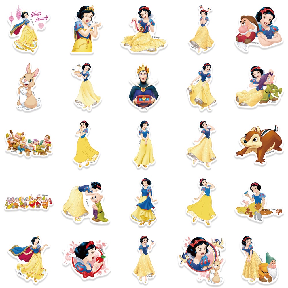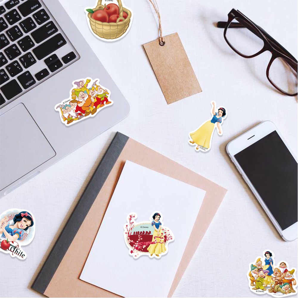 (การอนุญาตของแท้) สติกเกอร์ PVC กันน้ํา ลายการ์ตูน Snow White and the Seven Dwarfs 50 ชิ้น