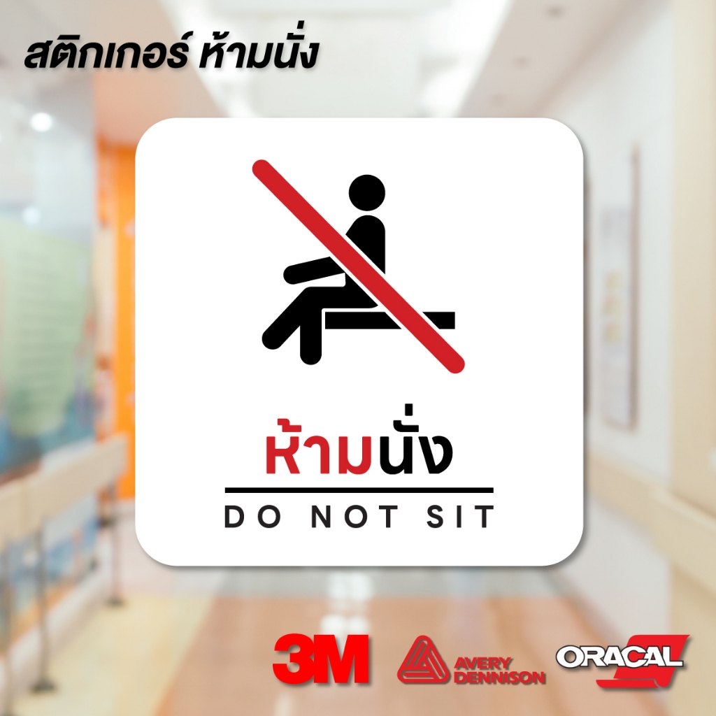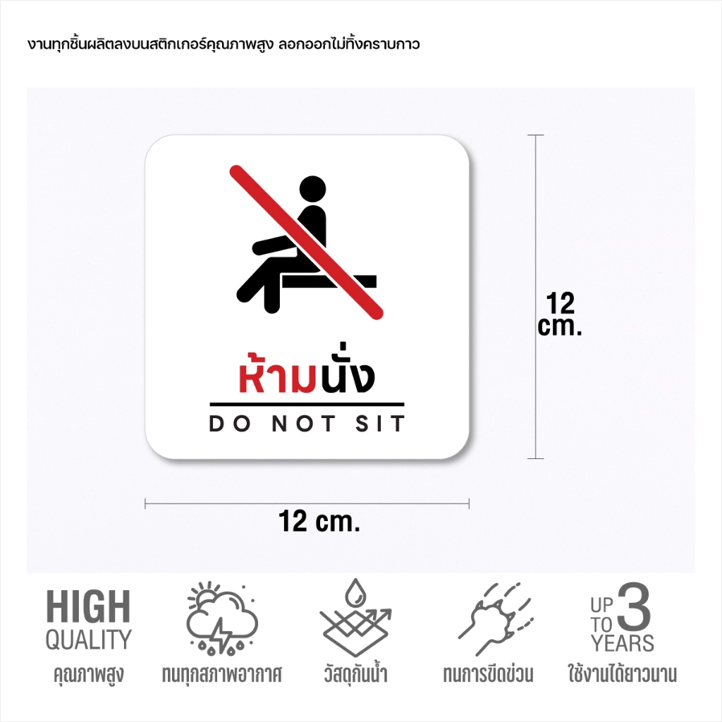 (N071) สติกเกอร์ ห้ามนั่ง ป้ายห้ามนั่ง สติกเกอร์ PVC กันน้ำ ขนาด 12×12 cm. สินค้าคุณภาพ