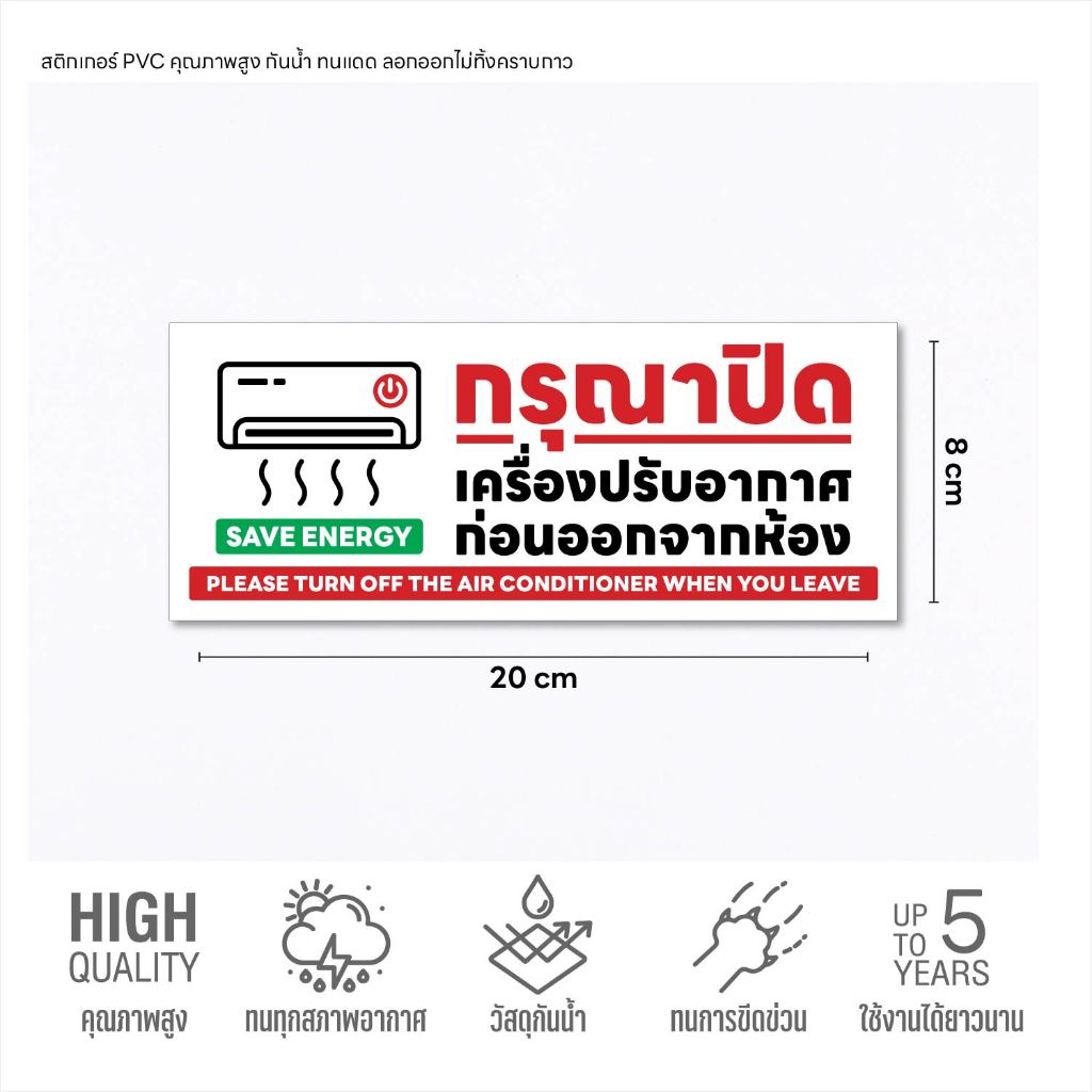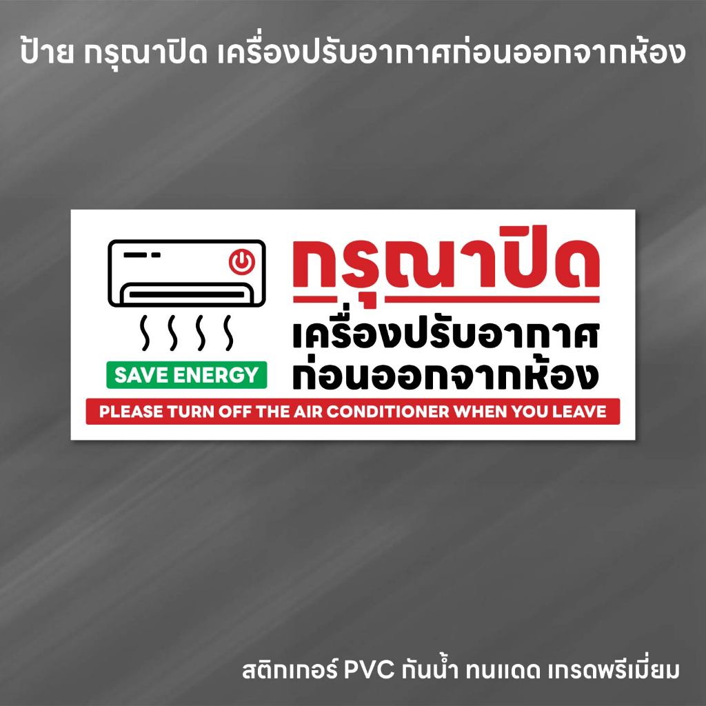 (N262) กรุณาปิดเครื่องปรับอากาศก่อนออกจากห้อง ป้ายสติกเกอร์ PVC กันน้ำ งานพิมพ์คุณภาพ