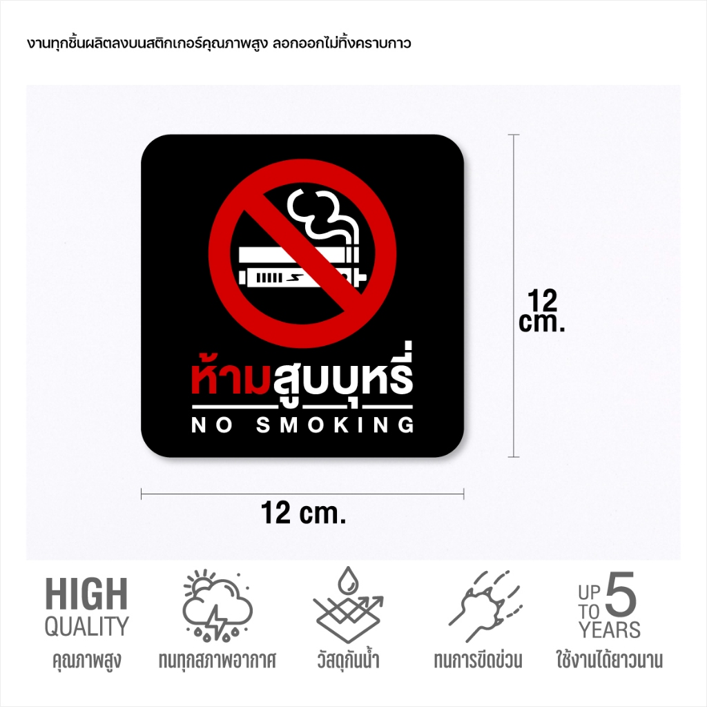 (N023) ป้ายสติกเกอร์ “ห้ามสูบบุรี่ no smoking” สติกเกอร์ PVC 3M รุ่นใหม่ ทนแดด ทนฝน