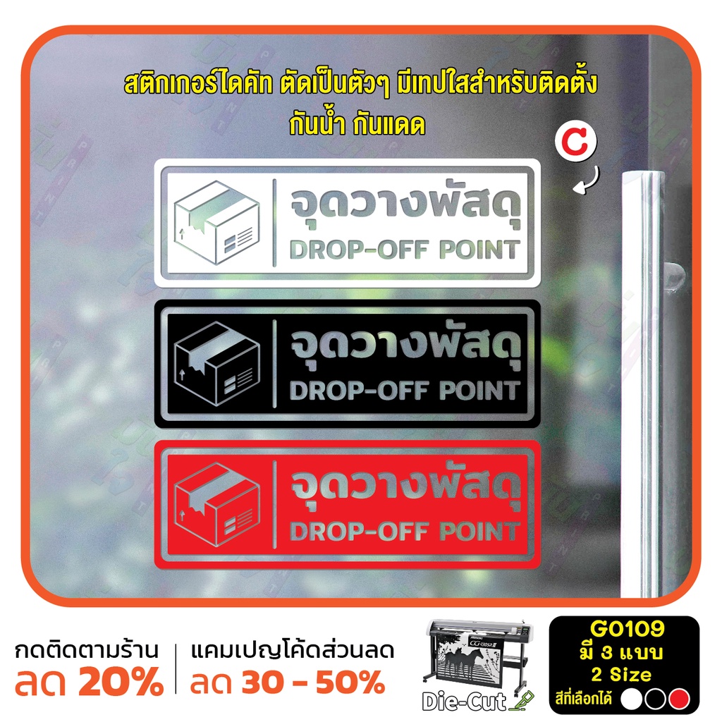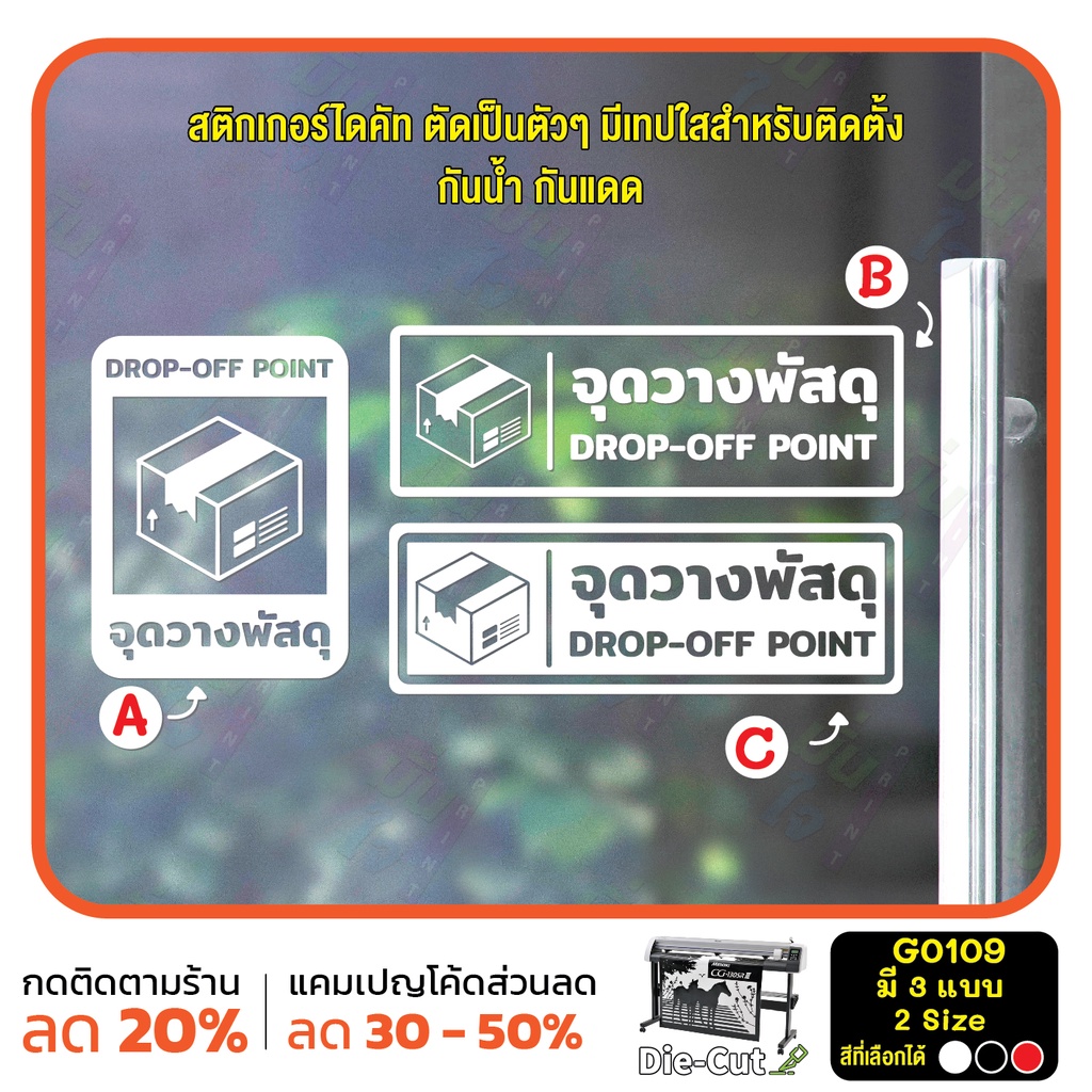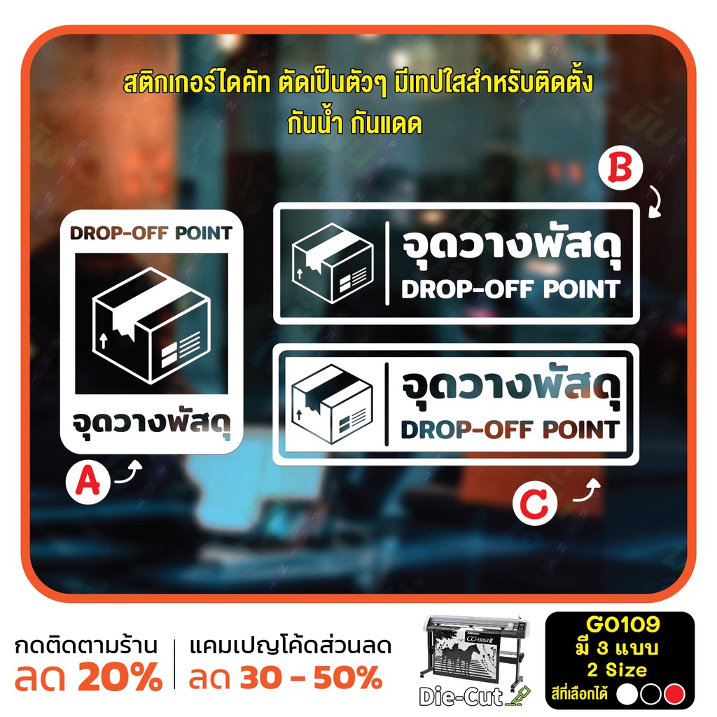 (ใช้โค้ด INCML11 ลด 50% สูงสุด 100) สติ๊กเกอร์ติดกระจก จุดวางพัสดุ DROP-OFF POINT (G0109) สติกเกอร์ ป้ายวางพัสดุตรงนี้