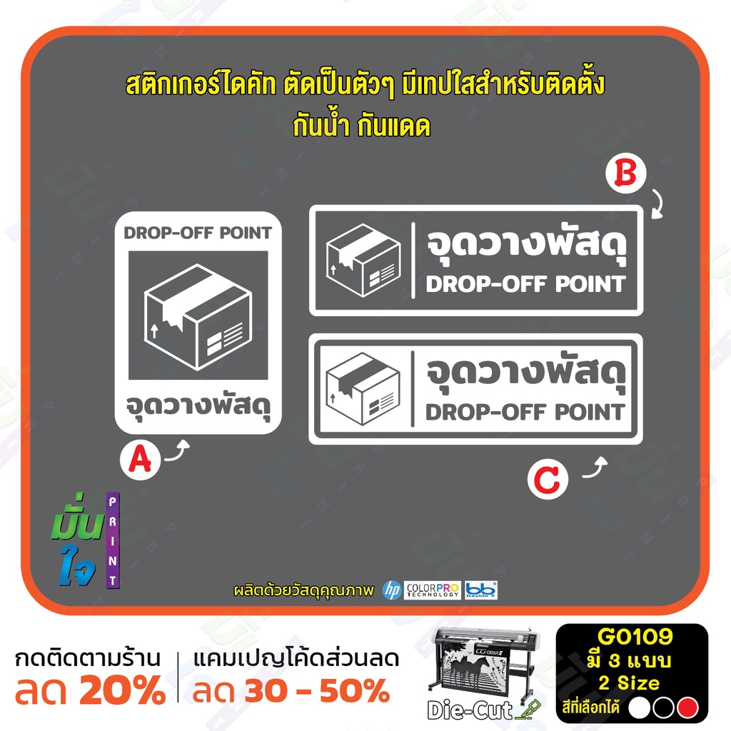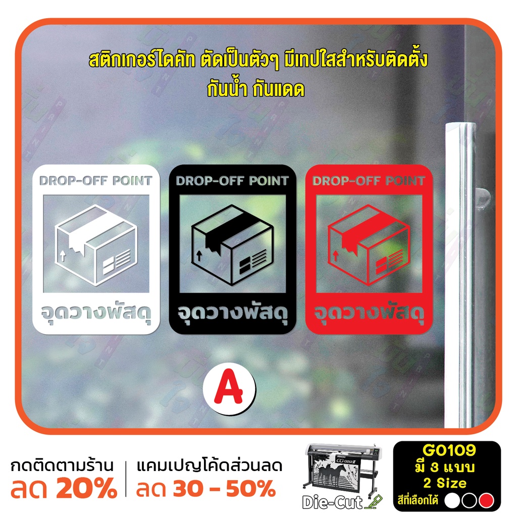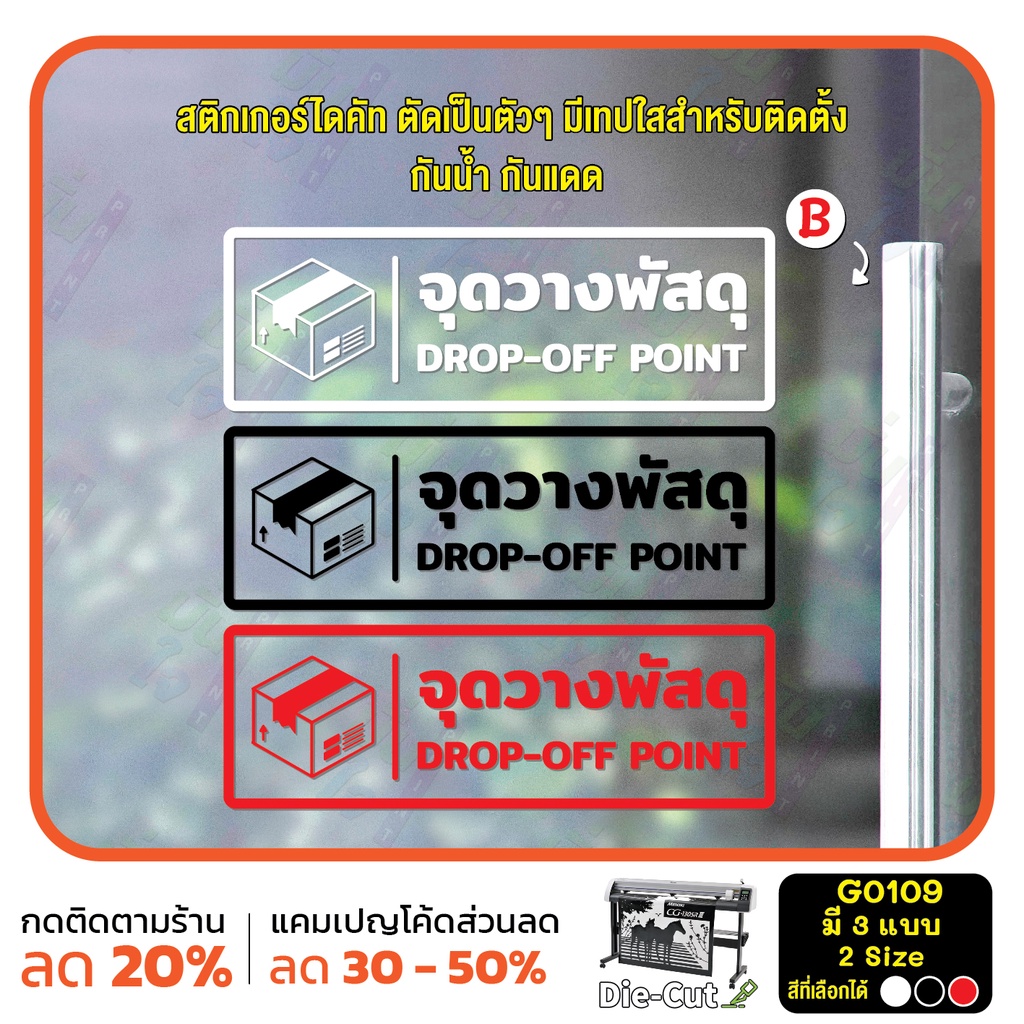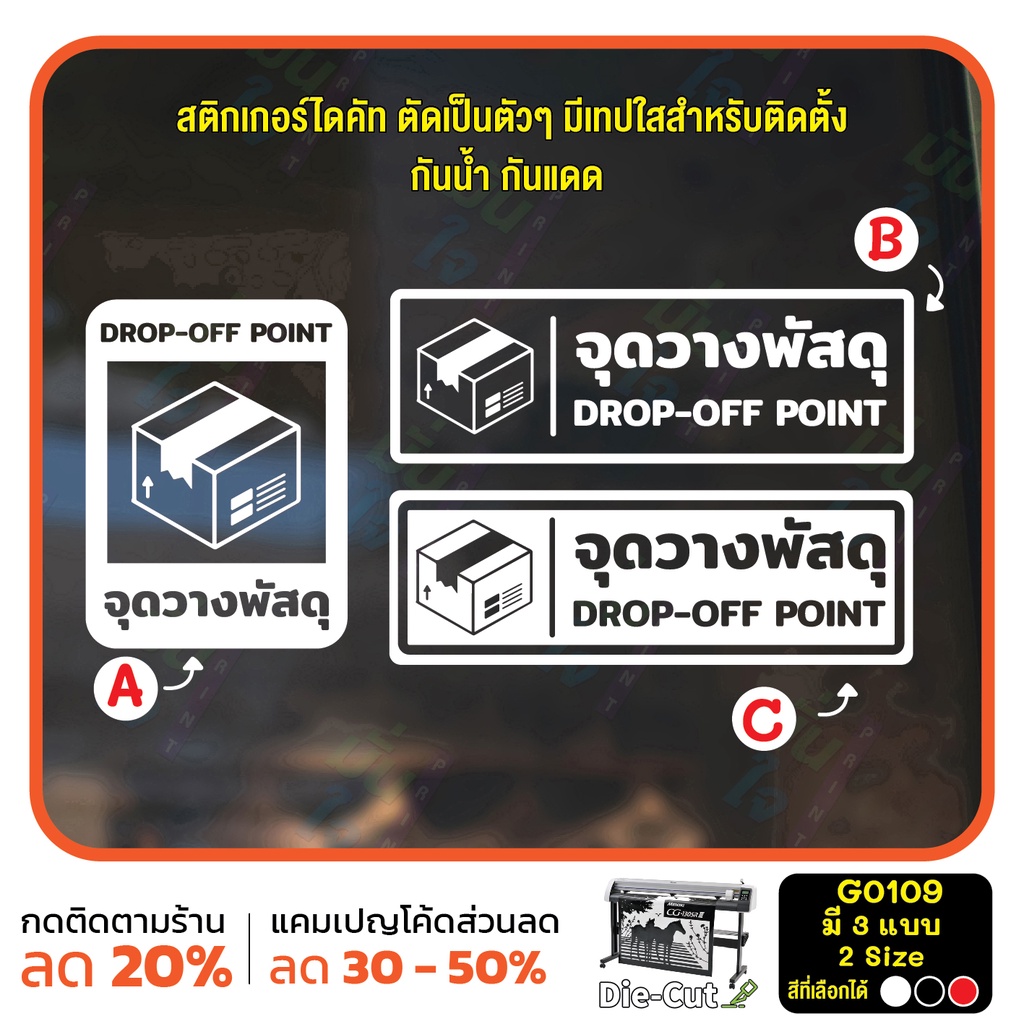 (ใช้โค้ด INCML11 ลด 50% สูงสุด 100) สติ๊กเกอร์ติดกระจก จุดวางพัสดุ DROP-OFF POINT (G0109) สติกเกอร์ ป้ายวางพัสดุตรงนี้