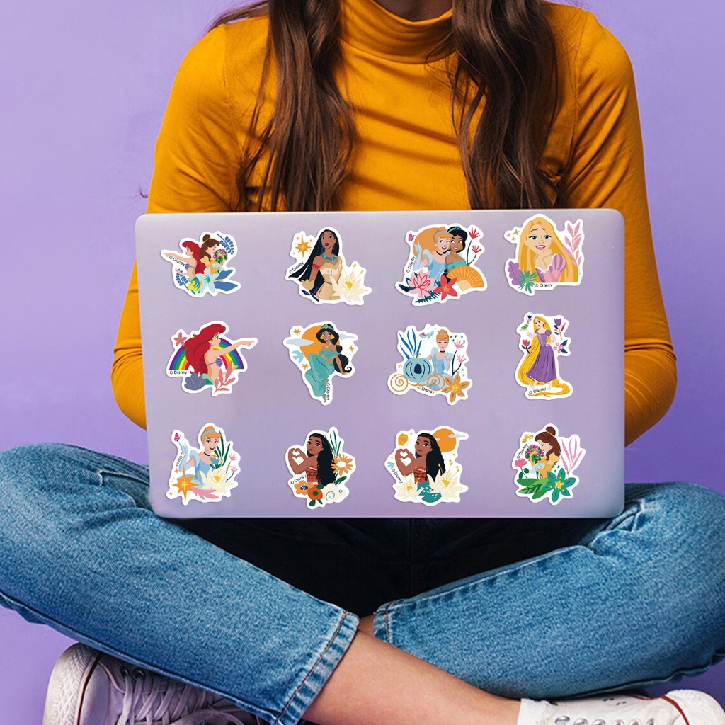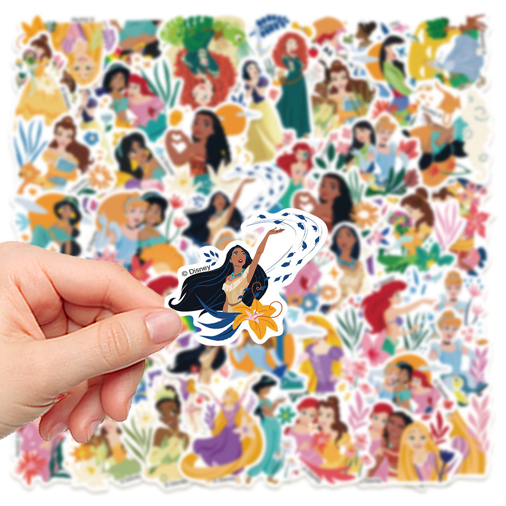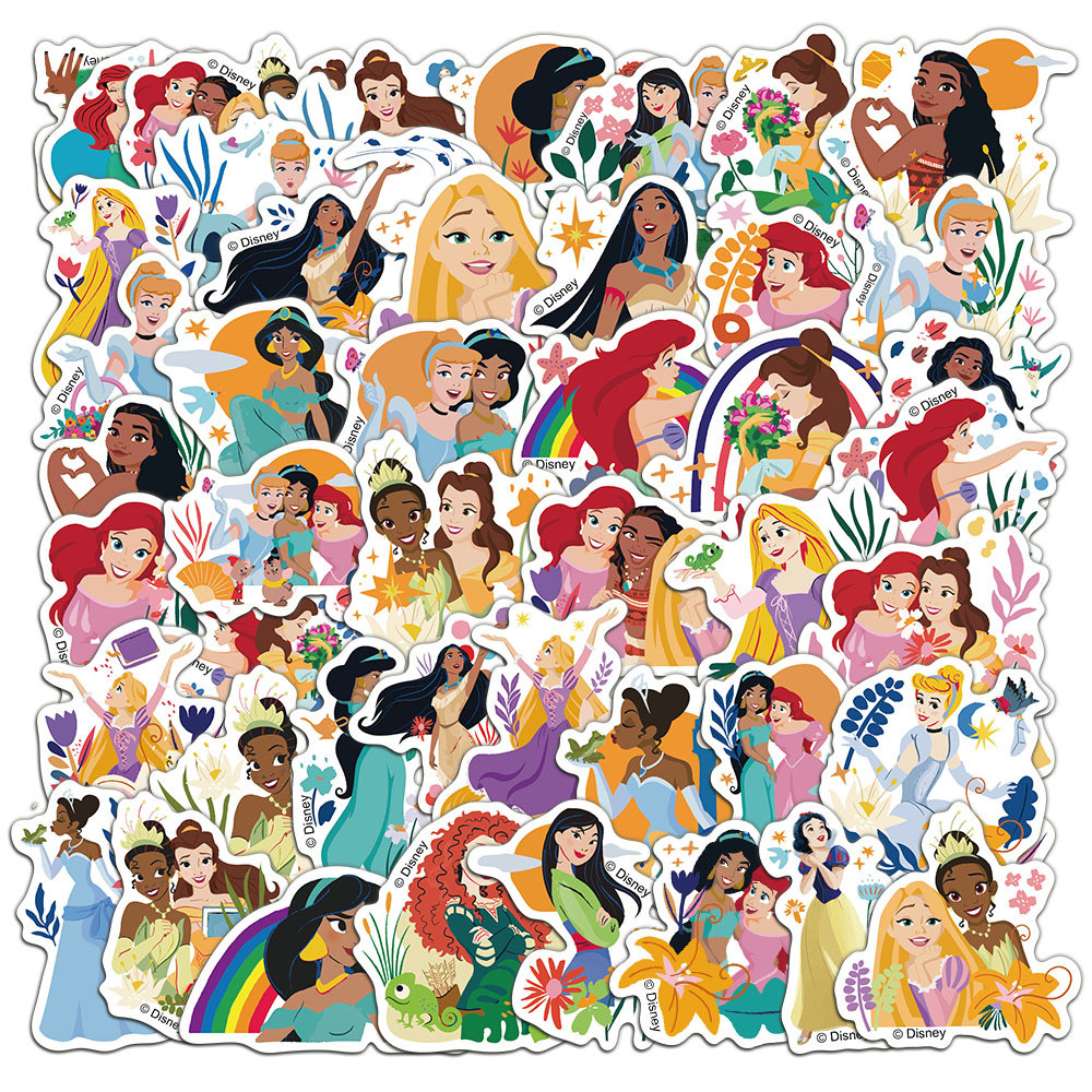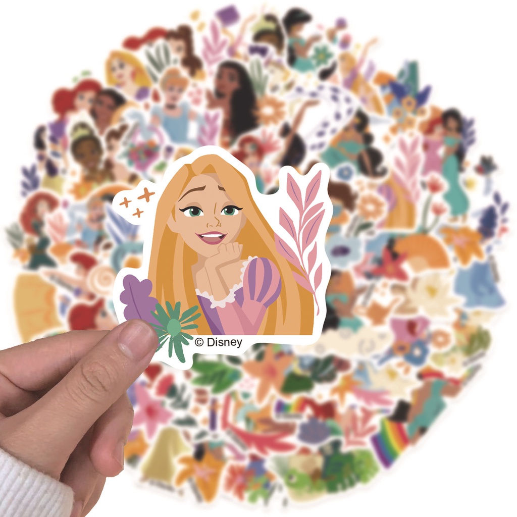 (ที่ได้รับอนุญาต) สติ๊กเกอร์ PVC กันน้ําลายการ์ตูน Disney Princesses and Flowers 50 ชิ้น